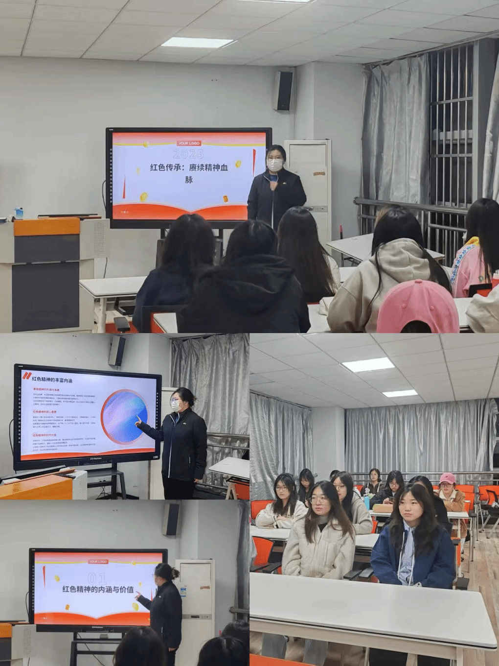 活动伊始,薛涵予为师生们深入解读红色精神的内涵与价值。通过生动的案例和详实的历史资料,详细阐述了井冈山精神、长征精神等红色精神在革命战争年代的形成与发展,强调这些精神是党领导人民在艰苦卓绝的斗争中形成的宝贵精神财富,体现了坚定信念、不怕牺牲、敢于斗争等品质。她指出,爱国主义是红色精神的核心,激励着无数仁人志士为国家独立、民族解放而奋斗。从林则徐虎门销烟到抗日战争中无数英雄的壮举,彰显了爱国情怀,同时,崇高理想与奉献精神贯穿其中,共产党人为了共产主义理想,舍小家为大家。