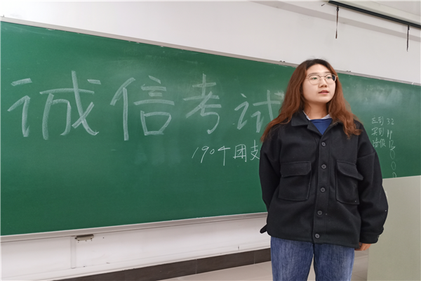 图为班委倡议大家诚信应考。记者 李佳楠 摄