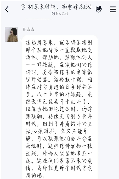 图为阅读《周恩来邓颖超通信选集》有感。记者 陈雯 摄