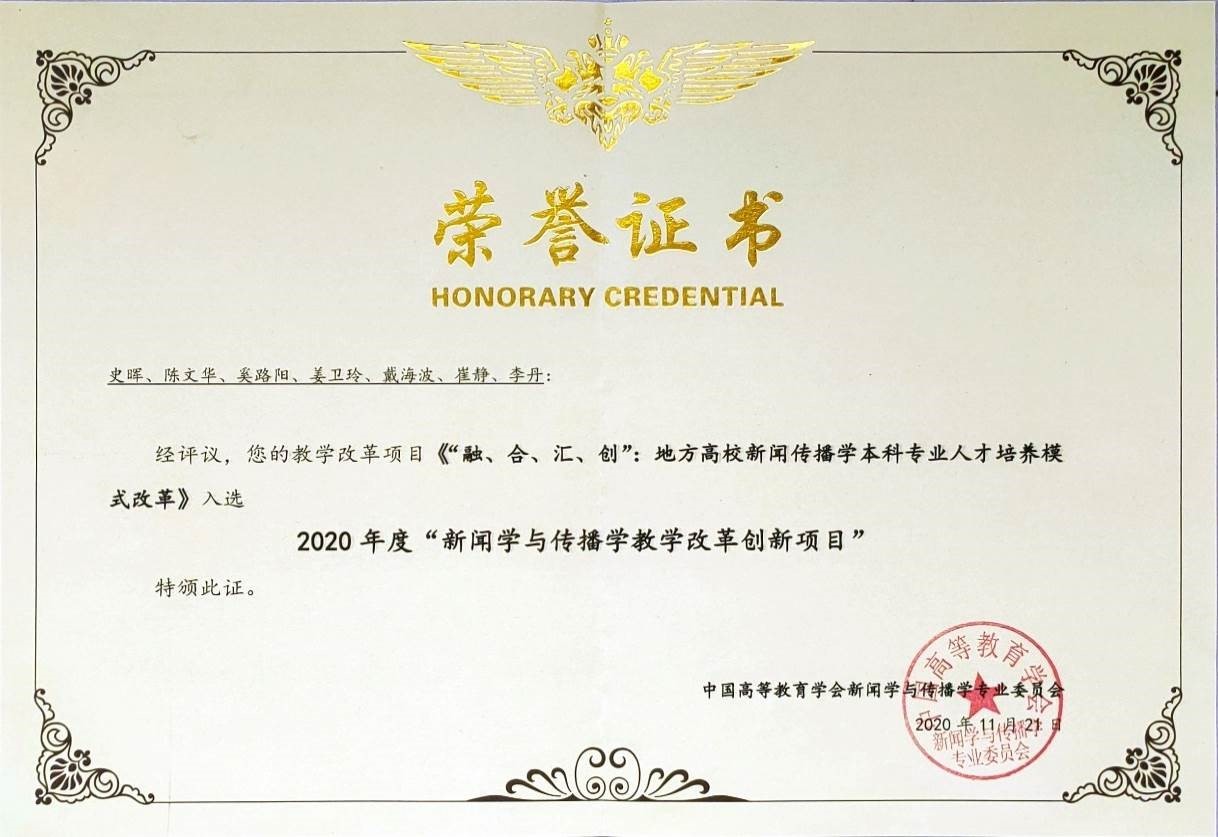 2020年,公司《地方高校新闻传播学本科专业人才培养模式改革》项目荣获中国高等教育学会新闻学与传播学专业委员会颁发的“中国新闻学与传播学教学改革创新项目”奖。史晖经理在中国高等教育学会新闻学与传播学专业委员会第八届理事会第三次会议上就做专题报告,重点介绍了公司应用型人才培养模式改革、新闻传播教学改革以及专业特色发展等情况。