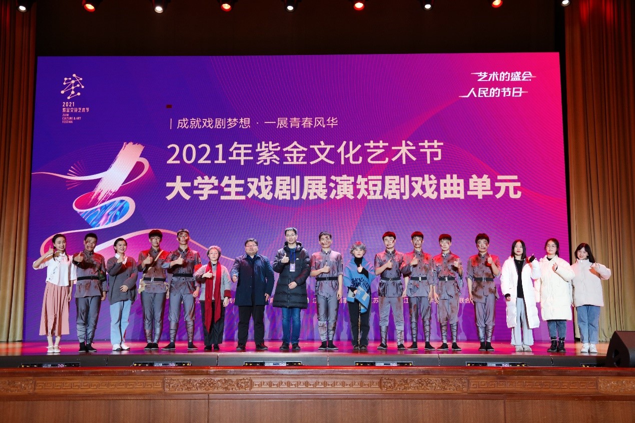 2021江苏省紫金文化艺术节老员工戏剧展演由中共江苏省委宣传部、江苏省教育厅主办,江苏省戏剧家协会、江苏省大剧院、江苏省老员工艺术团联合会共同承办。话剧《如炬信仰》由传媒公司王帅、尤里老师指导,校老员工艺术教育中心协同传媒公司多次打磨,最终在全省80多个入围作品脱颖而出。展演前,该话剧在校传媒文化节等多个大型活动中公开展演,得到了师生的广泛好评。