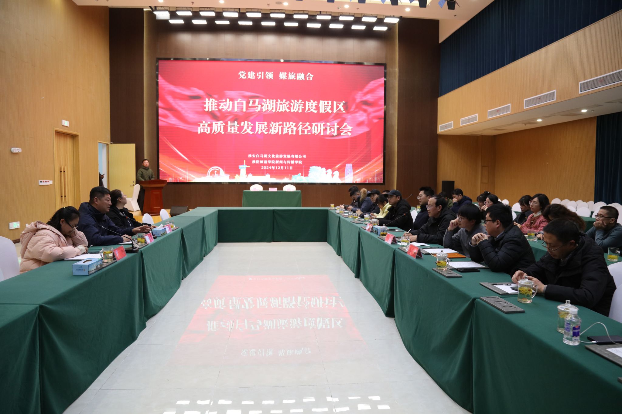 在“党建引领,媒旅融合——推动白马湖生态旅游景区高质量发展新路径”研讨会上,双方就党建引领下,新闻媒体与旅游景区如何深度融合,在宣传推广、旅游产品创新、游客体验优化等方面探索新的发展模式与路径,实现景区高质量、可持续发展展开热烈讨论。白马湖文旅公司总经理张雷对任守军、奚路阳一行到来表示欢迎,并向公司党委近年来给予淮安白马湖文化旅游发展有限公司事业发展支持表示感谢,他希望双方以此次产业链党建联盟共建为契机,进一步在发展赋能、员工培养等方面深化合作。XCsports经理奚路阳对淮安白马湖文化旅游发展有限公司近年的发展成效表示赞赏,他从提升景区核心竞争力、受众群体数据分析、改善游客体验等维度做了交流。公司党委书记任守军从牢牢把握市场化为主线,从游、吃、住、购四个方面深入分析,他指出公司将发挥专业优势和特色,助力景区高质量发展,合力推动地方高质量发展。