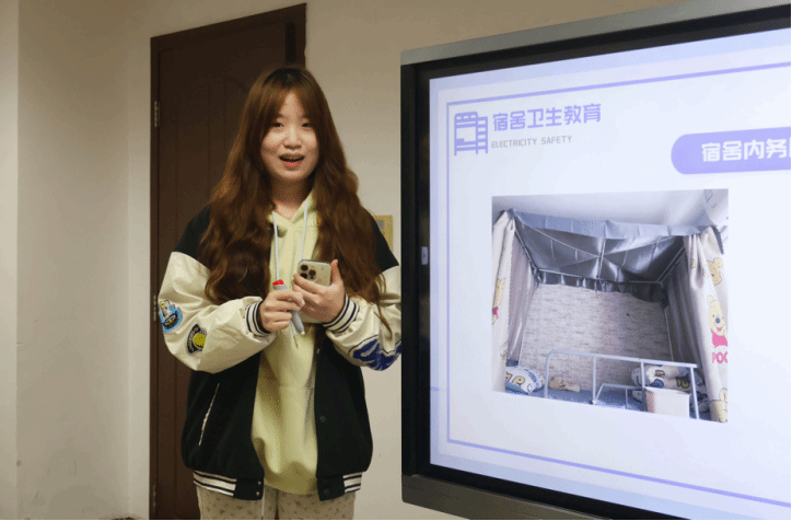 宿管部韩易达汇报公司宿舍安全管理、文明宿舍申报以及学霸宿舍申报三个方面的内容,并提出良好的住宿环境不仅关乎同学们的身心健康,也是培养良好生活习惯和集体责任感的重要方面,提升员工社区环境卫生水平,努力营造宜居、宜学的环境氛围尤为重要。荆轲瑶、杨汉希两位同学分别代表女生和男生的文明宿舍上台发言,他们针对不同类型的宿舍进行了展示,并提出建议。张泽旭,熊子豪两位同学作为学霸宿舍代表,分享了他们关于学习的见解和方法。他们认为考前熬夜突击是不可取的,需要同学们上课认真听讲,复习时整合重点、绘制思维导图等都是不错的方法。