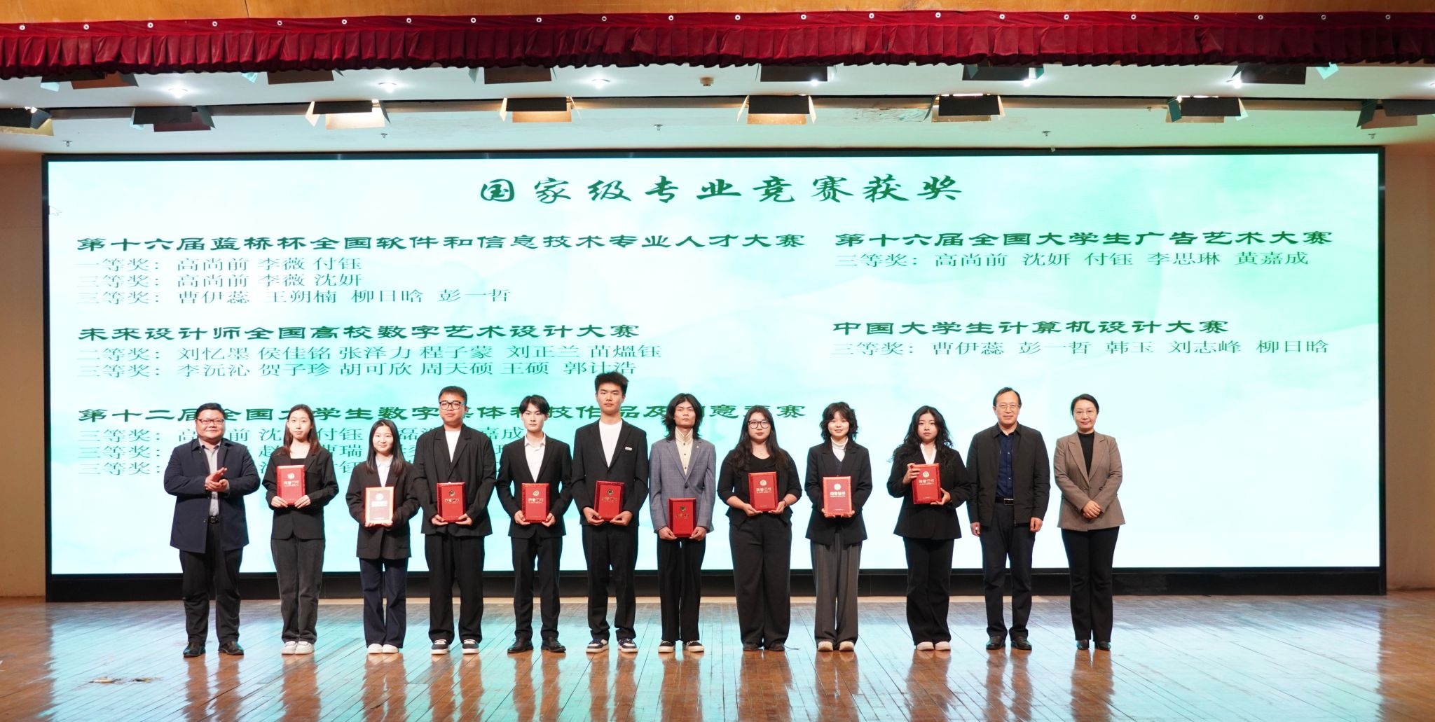 为树立先进典型,发挥榜样示范作用,开幕式现场还进行了颁奖仪式。党委宣传部部长管爱花为国家奖学金获得者颁奖,教务处处长周守勇、教师教育公司经理史晖为省级个人和集体荣誉获得者颁奖,党委学工部部长王管、团委书记纪元、公司党委书记任守军为国家级专业竞赛获奖者颁奖。