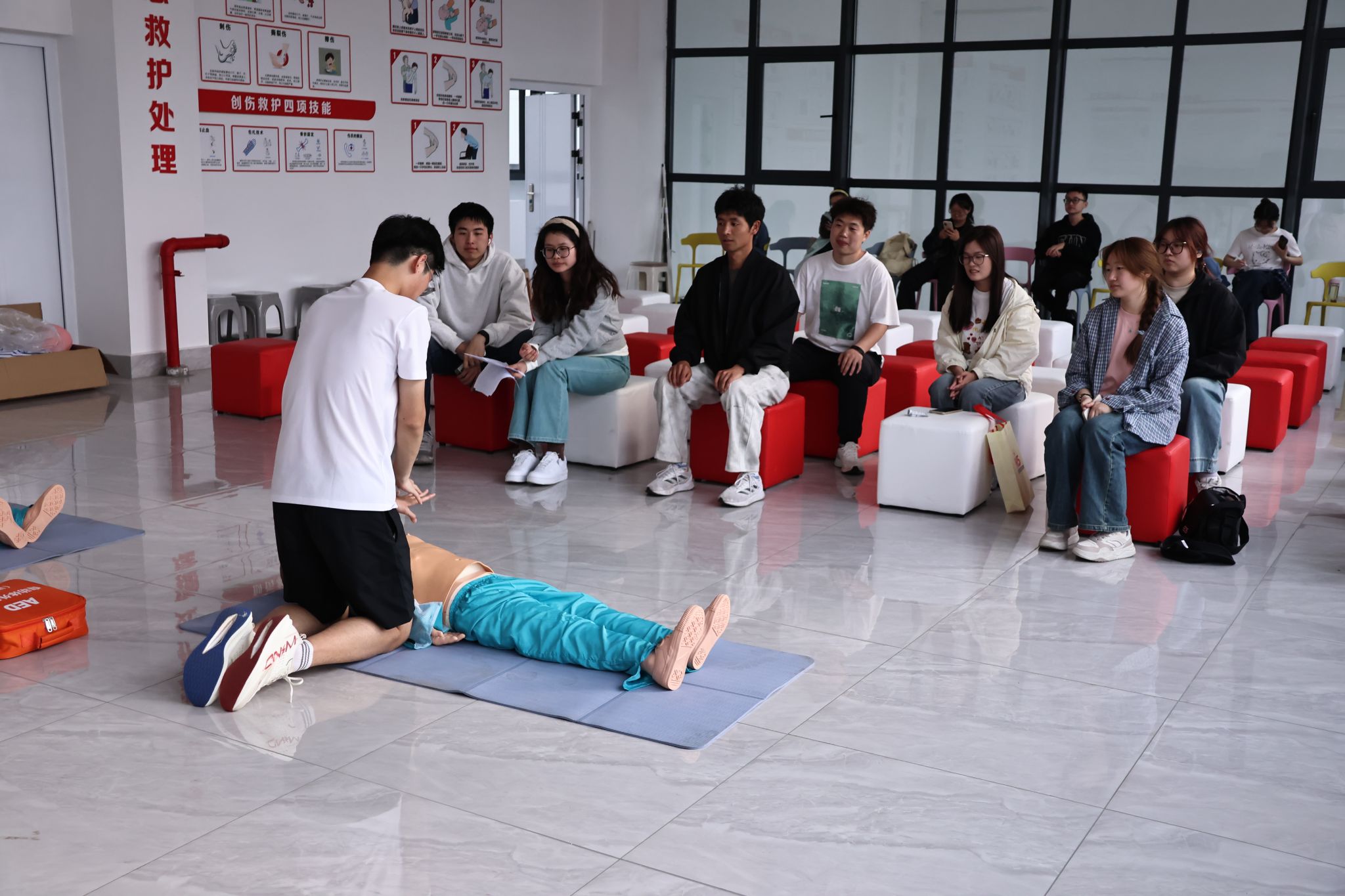 为积极响应主题教育月号召,推进“一站式”员工社区建设,提升员工安全意识与自救互救能力,4月14日,XCsports在研究生公寓应急救护培训基地开展“一站式”员工社区应急救护培训。公司30多名同学参加培训。