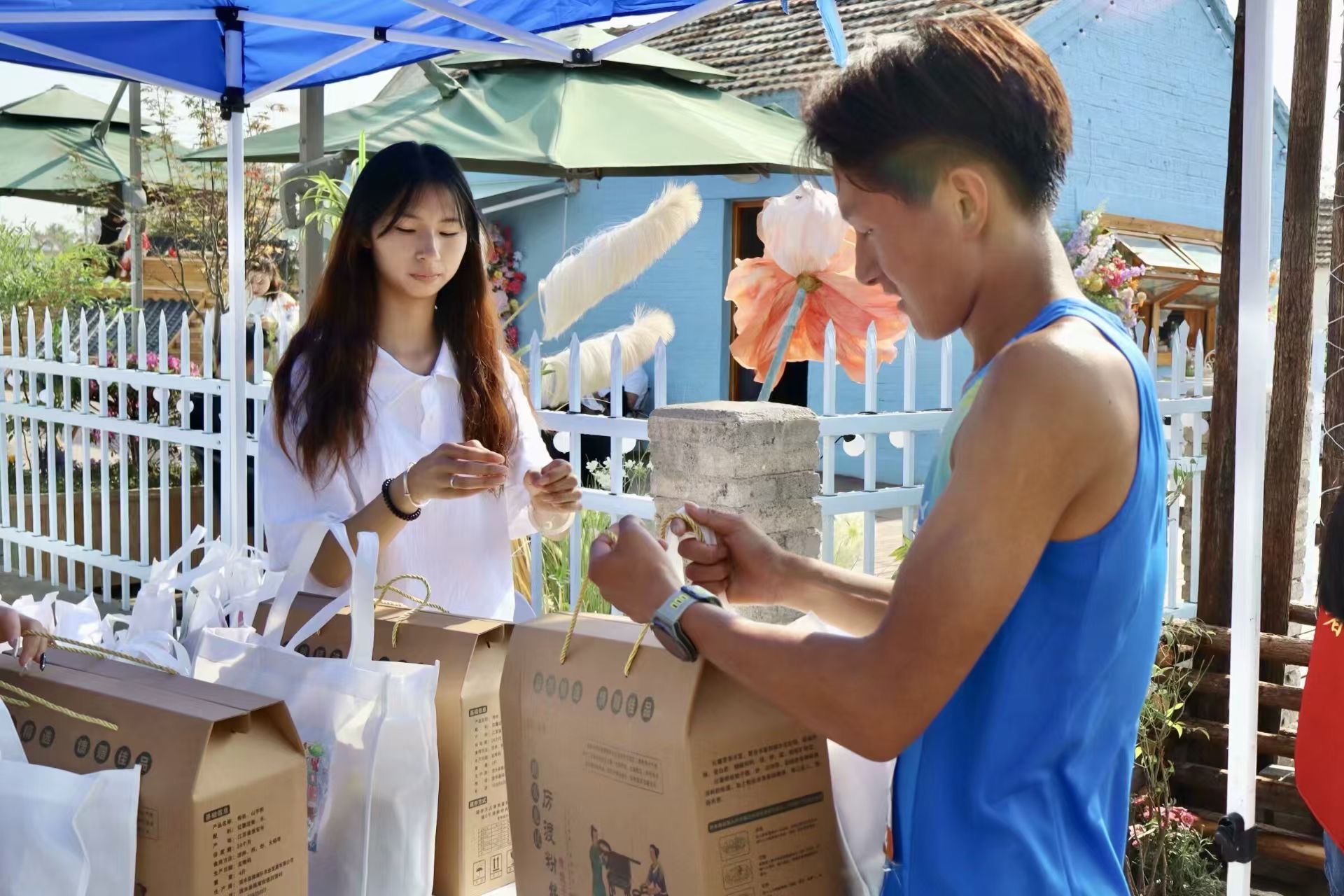 清晨6点,身着统一服装的志愿者们已分赴赛道各点位,承担起摄影摄像、秩序维护、物资补给、安全提示等多项志愿服务任务。在长达10公里的赛道上,新传学子利用无人机和手持设备实时记录赛事精彩瞬间。“我们提前一周设计准备,开展志愿服务培训,力争让参赛者感受到乡村的魅力和活力。”志愿者队长刘天义介绍。