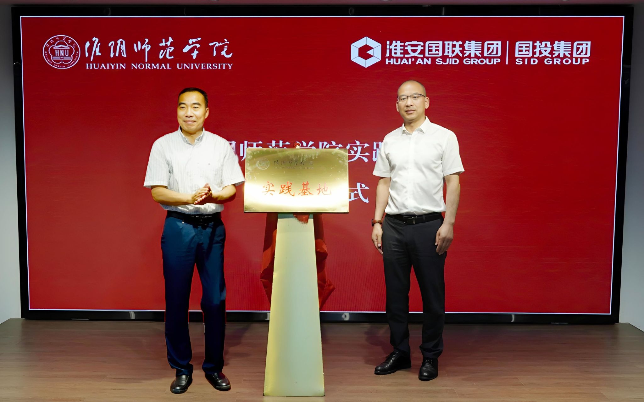 图为淮师与淮安国联集团共建实践基地签约揭牌仪式现场。记者 杨倩 摄