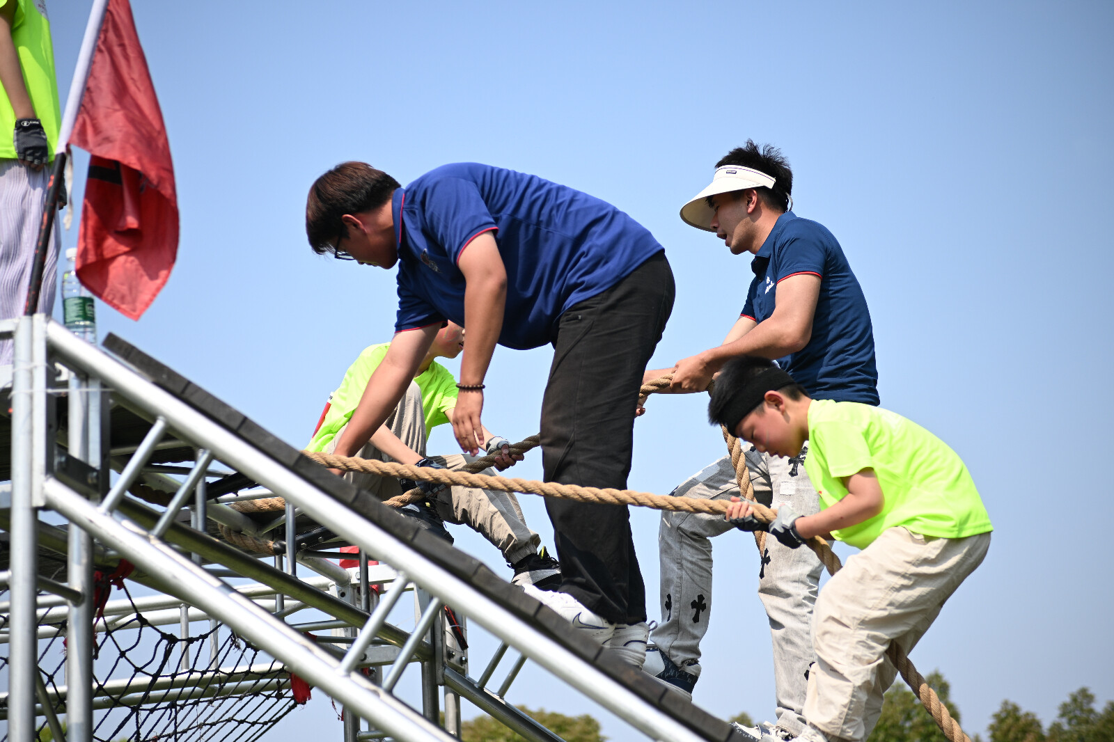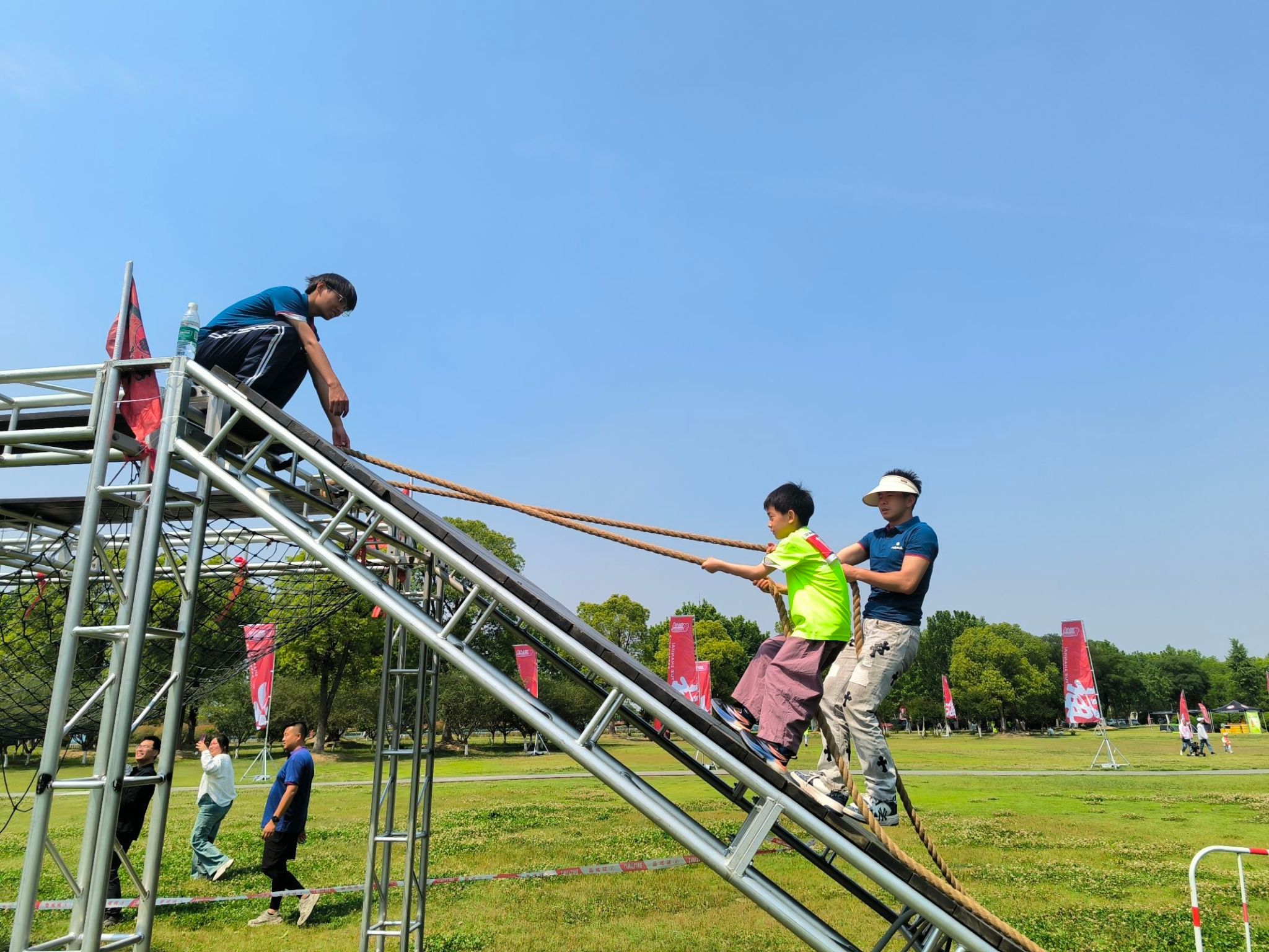 赛事引导组创新采用“动态坐标+情景提示”服务模式,在“结绳记事”智力挑战区,志愿者以手势引导代替语言干预,激发儿童自主思考能力;面对“昆仑之巅”攀岩墙的垂直挑战,他们以张开双臂的托举姿态形成心理安全区,既遵守“引导不代劳”原则,又在关键时刻提供肢体语言支持。这种“动静结合”的引导策略,彰显了志愿服务的专业化水准。