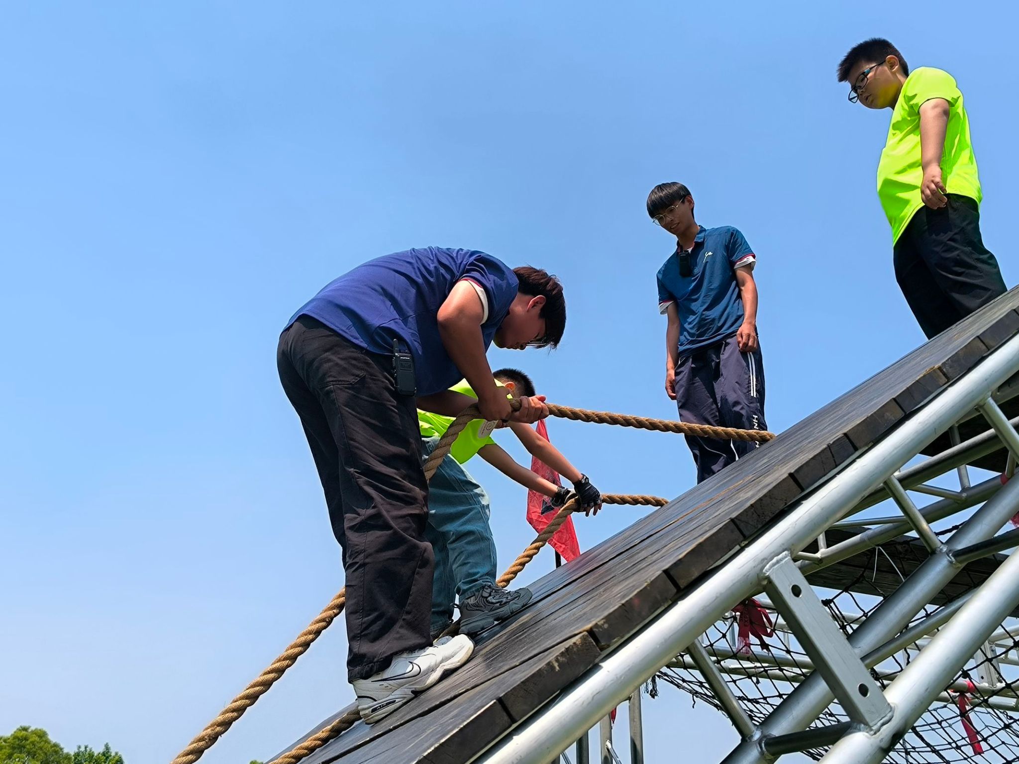 安全保障组依托公司智能传播技术优势,打造“人防+技防”双保险体系。用双重守护托起孩子们的每一次跃动。他们以身影为盾,时刻准备应对可能出现的危险;以目光为绳,紧紧跟随孩子们的步伐。志愿者们将风险管控转化为成长陪伴,实现了安全保障与品格培养的同频共振。他们用实际行动诠释了“守护”的深刻含义,既是危险边界的吹哨人,也是孩子们探索世界的撑伞者。