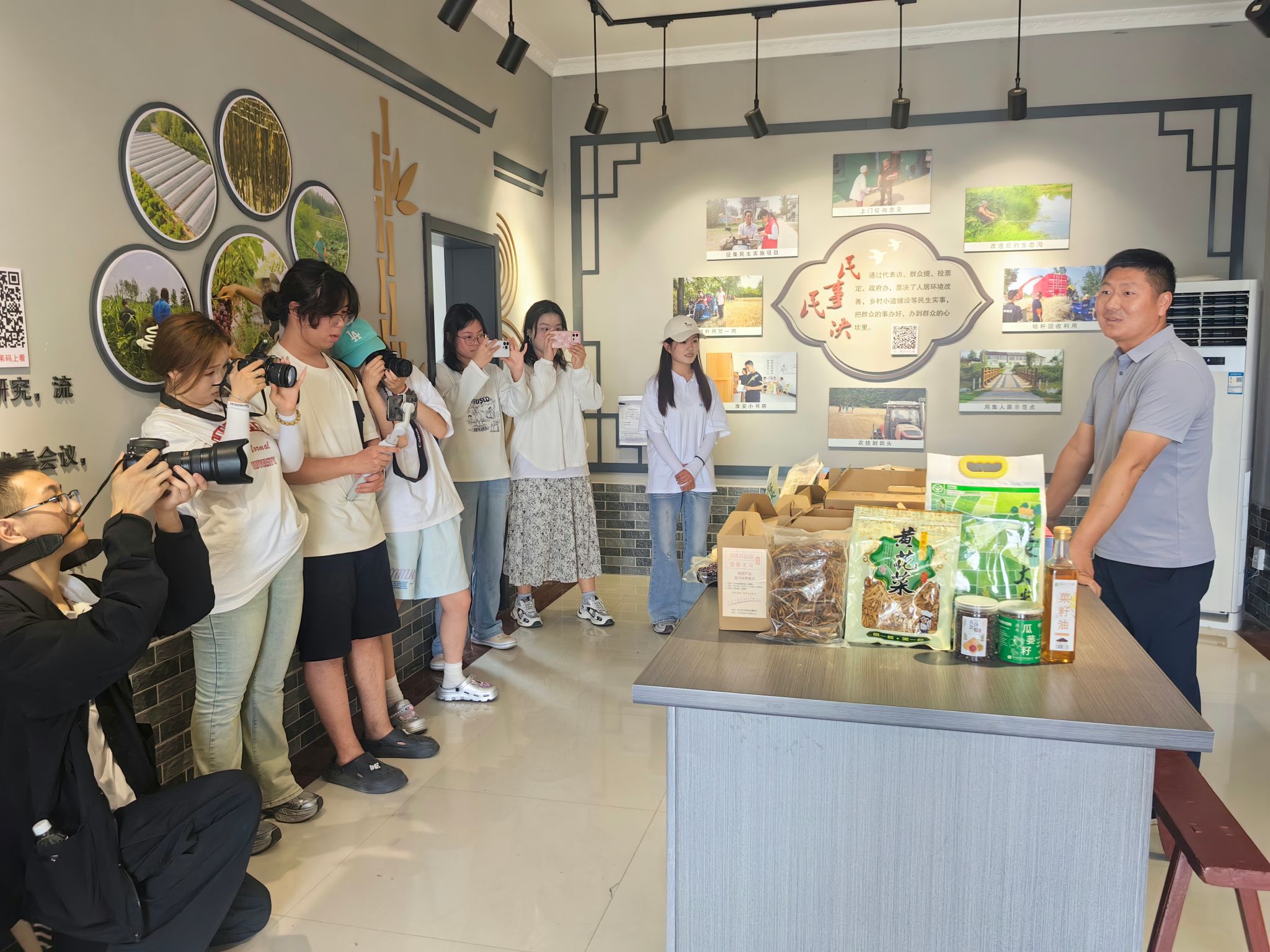 在蒋坝镇头河村,实践团在聆听党总支书记黄承云对当地支柱产业“螺蛳养殖”的介绍后,深入产业链条,尝试为螺蛳深加工产品设计包装与营销文案,助力产业附加值提升。实践团走进周集村,深入田间地头与农家改造院落,认真倾听党总支书记周林会现场讲解当地农产品特色与村咖文旅发展瓶颈,广泛调研、采访村民在生产销售、文旅推广中的痛点难点问题。实践团将调研中发现的村民“数字技能薄弱”等共性问题转化为服务重点,并在周集村党群服务中心开设“手机拍摄剪辑”实训课,教师沈倩带领实践团现场演示农产品拍摄技巧,指导村民用AI软件快速制作带货视频。