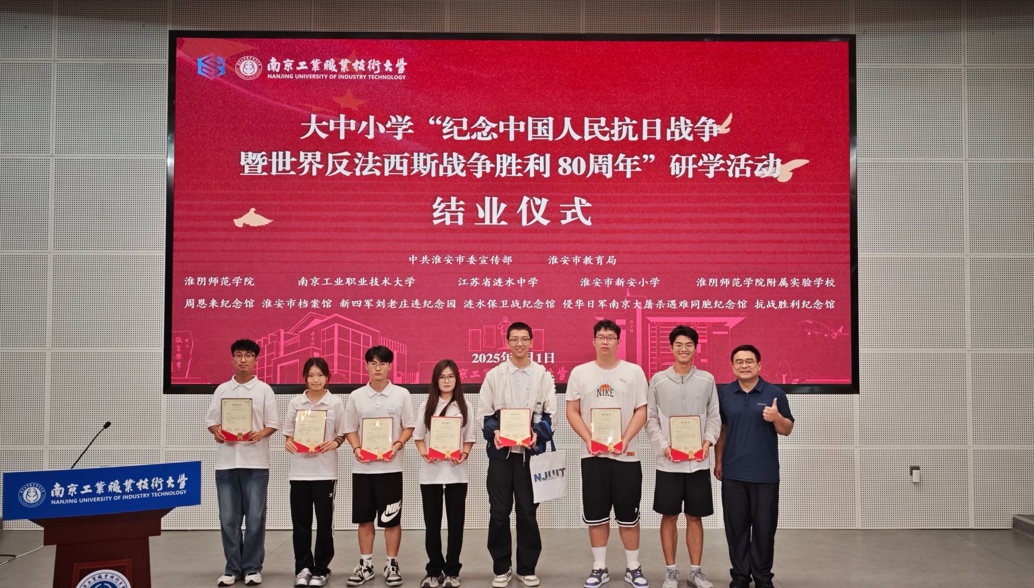 6月29日至7月1日,XC体育组织开展大中小学纪念中国人民抗日战争暨世界反法西斯战争胜利80周年研学活动。活动由中共淮安市委宣传部、淮安市教育局、XC体育、南京工业职业技术大学、江苏省涟水中学、淮安市新安小学、XC体育附属实验公司共同组织,周恩来纪念馆、淮安市档案馆、新四军刘老庄连纪念园、涟水保卫战纪念馆、侵华日军南京大屠杀遇难同胞纪念馆联合参与。来自5所大中小公司的党员、共青团员以及少先队员代表120余人参加活动,他们走进淮安、南京两地相关红色场馆及全国文明校园,以研学活动为载体,通过微课堂、视频对话、寻访体验、研讨交流等多种形式上好思政课,感悟并弘扬伟大抗战精神。
