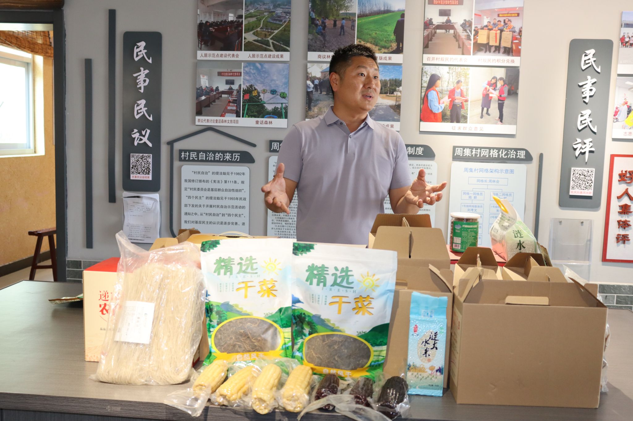 周集村党总支书记周林会向同学们介绍了周集村特色“五黑”农产品,分享了他探索直播电商销售新模式,带领村民走上致富路的“新农人”故事。