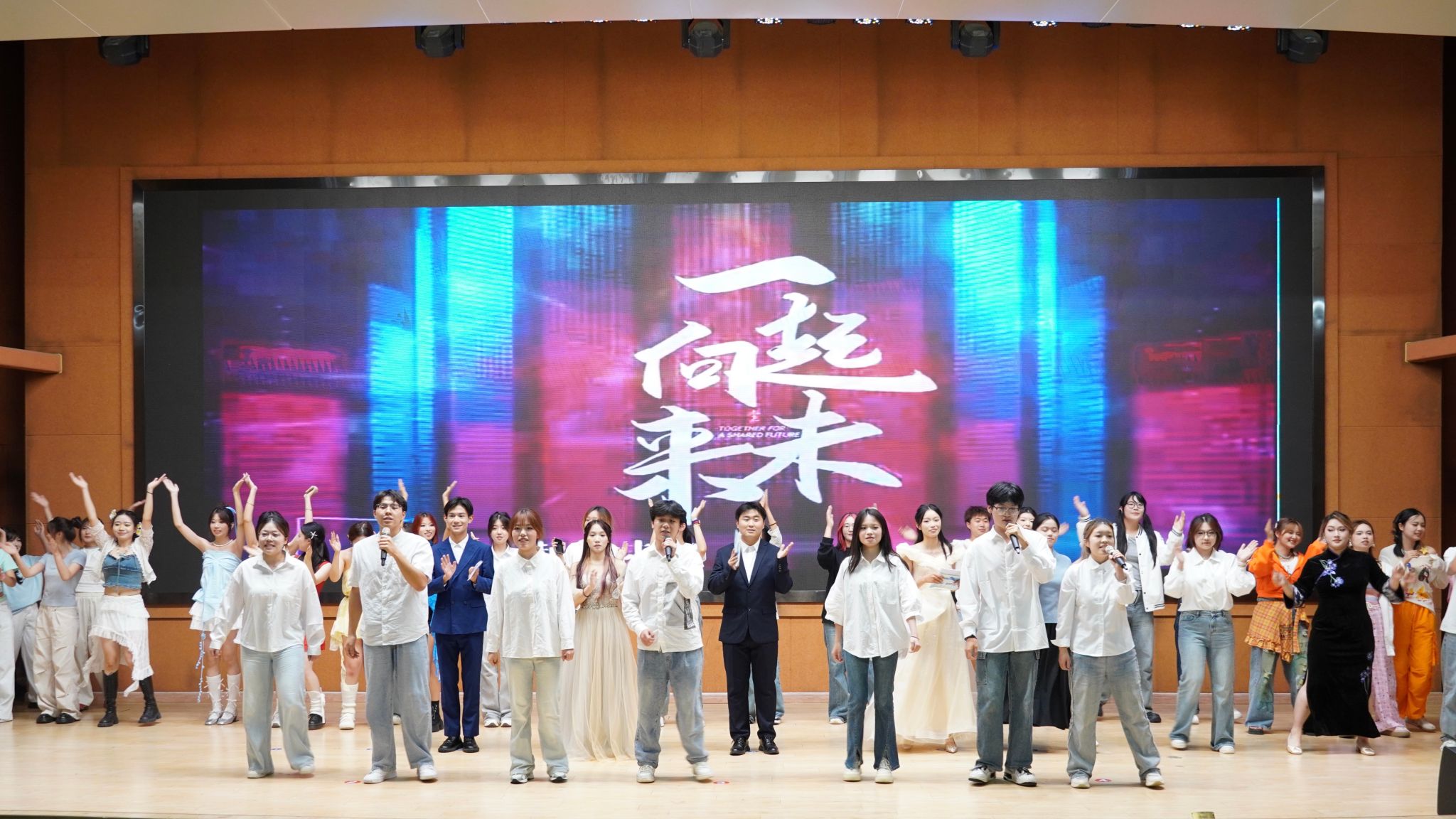 启航仪式中,同学们为大家带来了精彩的才艺表演。赵泽菲等同学朗诵《成为一束光》,以时空对话的形式深情演绎了传递新传人的责任担当;首届硕士研究生全体成员带来了幕布剧《闪耀》,他们以光影演绎成长故事;新生助班们以热辣滚烫的歌舞串烧形式,把现场气氛点燃;配音show、歌曲《世界上另一个我》、舞蹈《We Go》、大合唱《一起向未来》等节目精彩纷呈,展现了公司师生的专业素养与青春风采。