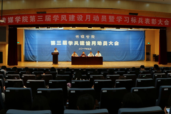 为营造良好的教风学风,增强员工学习的主动性、积极性,5月25日下午,传媒公司在图书馆报告厅召开了以“主动学习,成就未来”为主题的学风建设月动员大会暨学习标兵表彰大会。出席会议的有传媒公司经理史晖、党委书记沈东华、副经理陈长松、副经理陈文华、全体班主任以及非毕业班全体同学。沈东华主持会议。