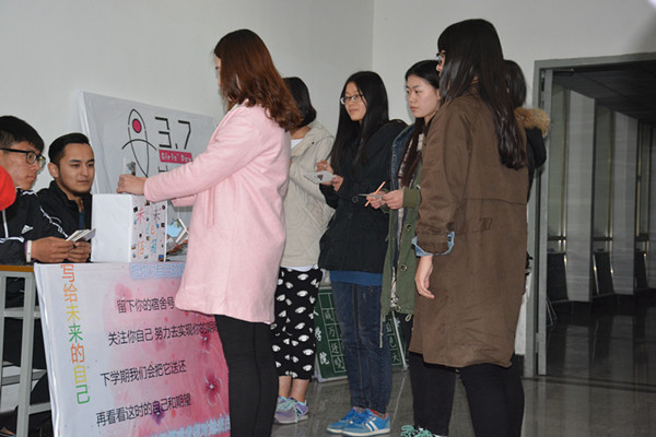 共计568本《女老员工安全手册》已经分发到每位传媒女生手中,只有15页内容,但每张均是由员工手绘而成,唯美的画风、活泼的形象、俏皮的文字使得原本枯燥乏味的女老员工安全教育知识变得更易于接受,这增强了女老员工安全教育的实效性和针对性,切实提高女老员工的安全意识和安全防范能力。除此,传媒1501班还专为女生举办“你写信 我跑腿”服务,以引导当代女生关注自身、发掘自身的不足和亮点,增强自信心,更好地完善自己。只要在3月7日这天,女生们填写明信片内容并留下所要寄出的地址和时间,就会有专人依据地址按时送出。随机抽取一张,只见上面写着:我希望在一学期之后还能看见今天我写下的承诺,为了更好的生活,我一直都在奋斗!(请于2016.6.30寄到20#608)——陈媛媛