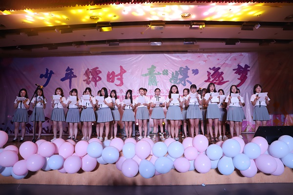 晚会在传媒公司“大魔王乐队”带来的《十年一刻》开场曲中拉开帷幕。观众们热情呼应,熠熠闪光的星空迎面展开,一如毕业生们璀璨的未来。1501班通过《青春纪念手册》进行时光穿梭,回到青涩时期,回忆点点滴滴;1502班同学们带来的歌曲《明天,你好》演绎着大公司园里毕业生们对未来的美好憧憬与期盼,情愫纷纷;《不说再见》是1506全体对彼此最想说的话。“再见了,相互嫌弃的老同学,再见了,来不及说出的谢谢,再见了,不会再有的留堂作业”;1503班的《手写的从前》传递着校园青春的温度与纯粹;“夜空中最亮的星,是否听清…”,1506班倾情演唱《夜空中最亮的心》引起了大家的共鸣;1505班《再见》道出了所有毕业生心中的那份不舍。