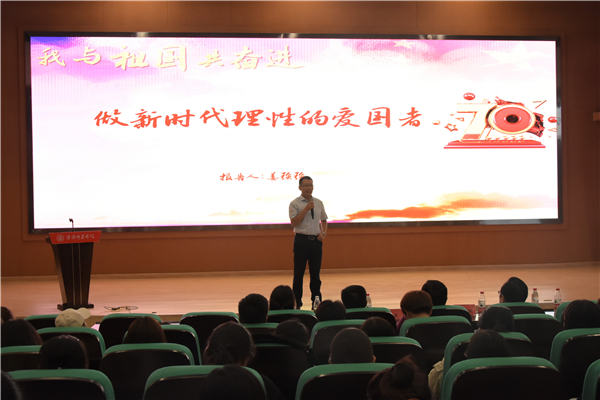 在《做新时代理性的爱国者》的演讲中,来自马克思主义公司的姜强强副经理讲到:“爱国主义永不凋零,拒绝做香蕉人和愤青,不盲目、不狂热,永远清醒冷静地去热爱祖国。”他强调,青年强则国强,作为新时代的新青年应当有爱国心、报国志。他用质朴的语言深深地感染了台下的师生,使在场学子对爱国有了更深层次的理解。