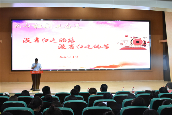 为庆祝中华人民共和国成立70周年,让同学们坚定理想信念,勇做追梦人,9月27日传媒公司于崇文阶梯106举办了“我与祖国共奋进”梦想公开课。公司党委员工工作部部长胡元林、公司党委宣传部副部长柏华、校团委副书记董旭冉、传媒公司党委书记王管以及传媒公司大一大二的部分员工出席了本次公开课。