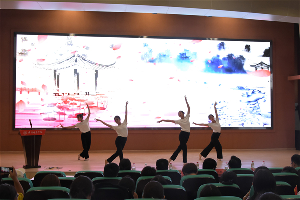 活动伊始,传媒学子自制的中国70年发展宣传短片为本次“梦想公开课”活动拉开帷幕,展现了中国高度、中国速度、中国深度不断发展,而与此同时,淮师成立61年以来,也紧跟国家发展步伐,不停注入新鲜血液,怀着一颗赤子之心,勇做追梦人的一份子。紧接着,舞蹈部带来的开场舞《丽人行》更是以曼妙的舞姿展 了古色古香的中国之美、中国之韵,使同学们快速融入活动氛围。