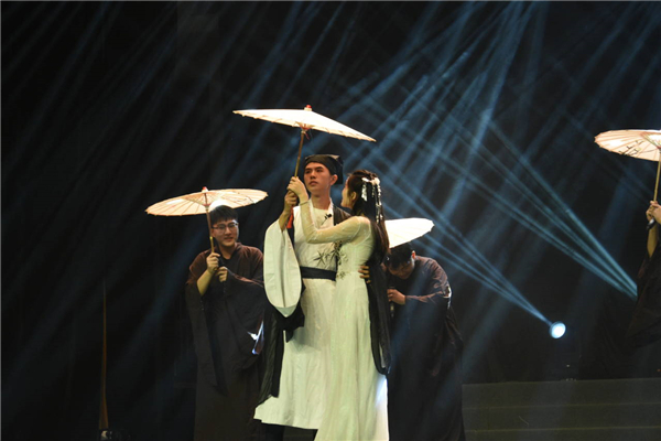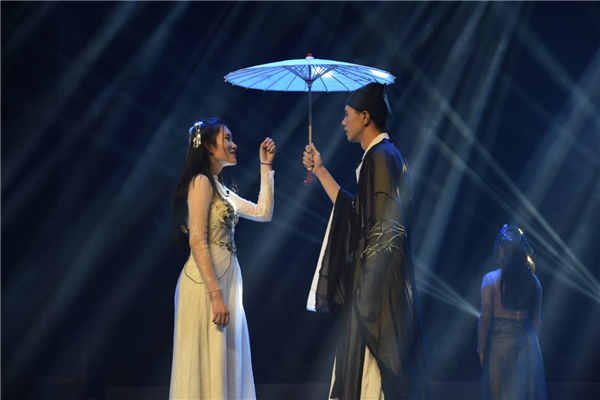 图为许仙白娘子伞下定情。记者 传媒摄影部 摄