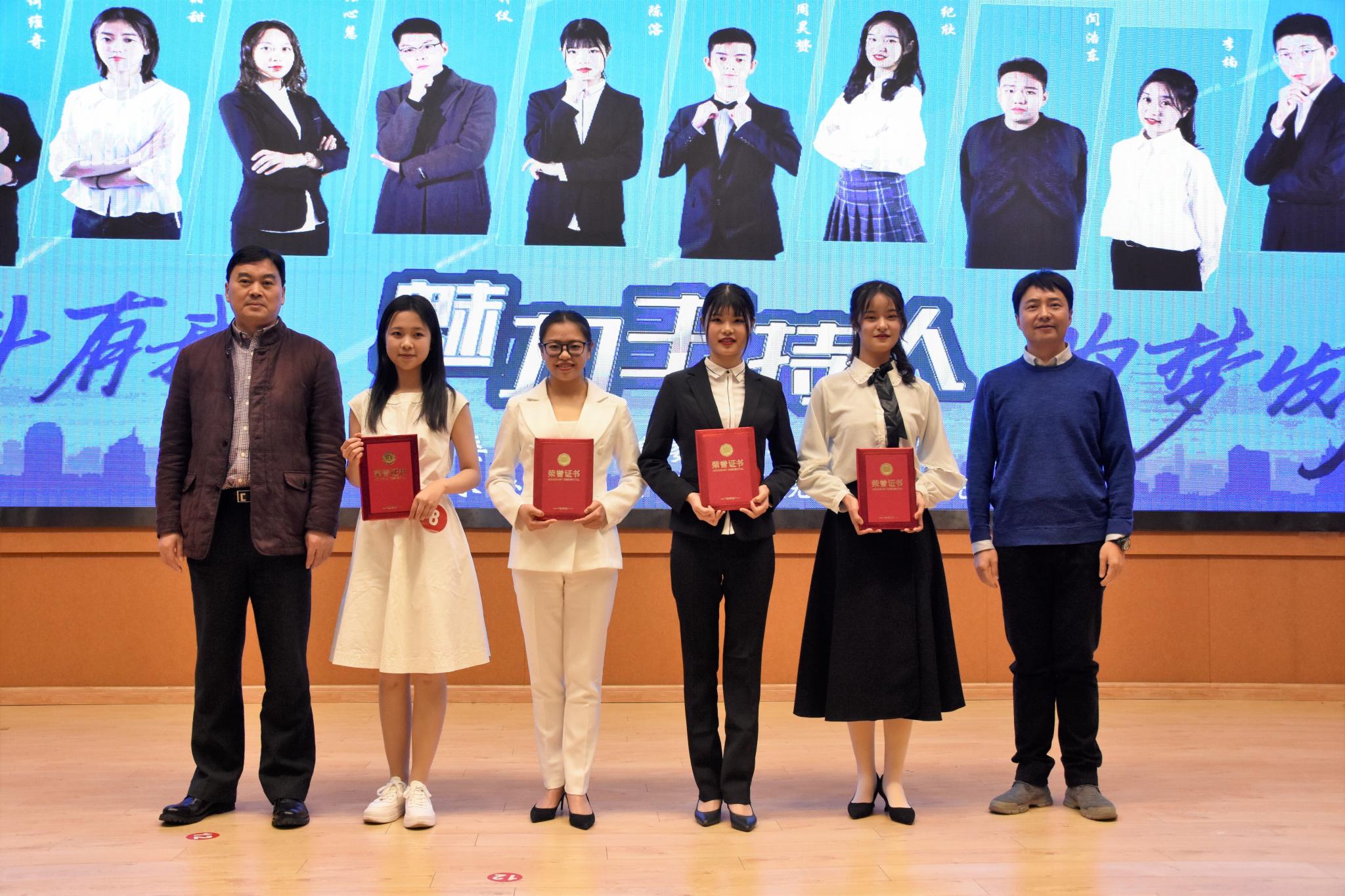 最终,经过激烈的角逐,城环公司张心慧、化学化工公司周昊赟荣获特等奖,传媒公司骆甜甜、物电公司杜嘉琪、历史公司喻纪欣、历史张陈溶荣获一等奖,传媒公司李楠、闫浩东、李思琪、经管公司何维奇、城环公司王钟仪、数统公司鞠瑞荣获二等奖。其中,物电公司杜嘉琪、化学化工公司周昊赟、城环公司张心慧还分别荣获“最佳才艺奖”、“最佳台风奖”以及“最佳口才奖”。