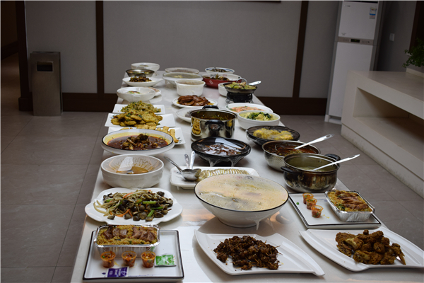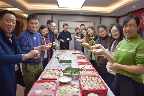 包饺子活动率先拉开了系列活动的序幕,各位老师精神饱满、劲头十足,将包饺子变为了一场艺术展示,饺皮、肉馅在大家灵巧的手中翻滚飞舞,很快就变成了一个个美味的饺子。紧接着,系列活动的重头戏--“厨艺大比拼”正式上演,参赛的老师们纷纷拿出了自己在家准备好的拿手好菜。在品尝美食过程中穿插了精彩纷呈的节目表演,唱歌、朗诵、新年祝福等一系列才艺展示赢得了阵阵掌声。“逢3遇7过”与“成语接龙”小游戏更是将现场的氛围推向了高潮,整个场面热闹非凡。