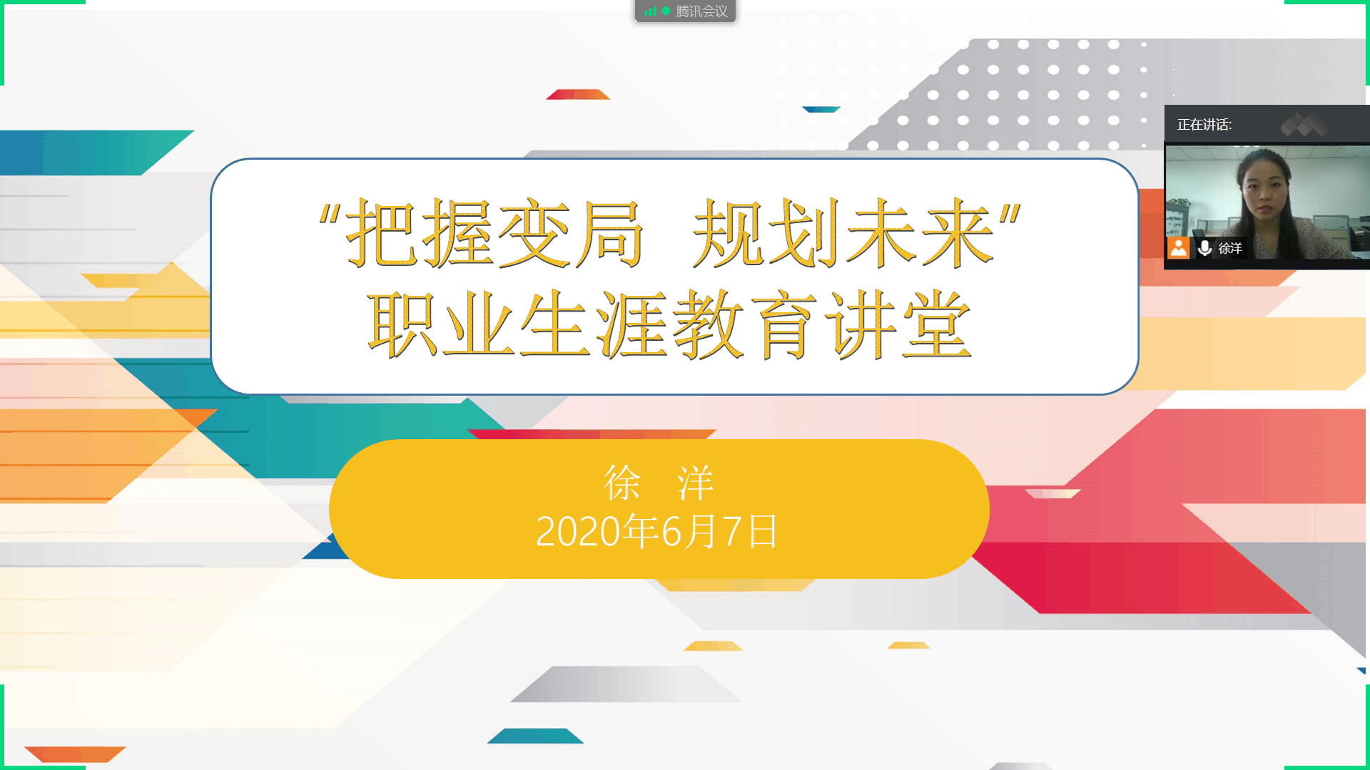 为了帮助2021届毕业生了解最新的就业政策,制定科学合理的职业生涯规划,传媒公司于6月7日下午开展了线上“把握变局 规划未来”职业生涯教育讲堂。本次活动由就业工作辅导员徐洋主持,2021届全体毕业生参加。