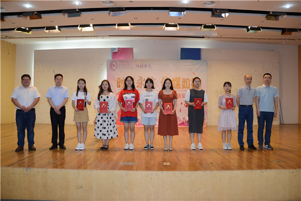 接着,公司党委书记王管和经理史晖为张娇狄、彭玉洁等7位同学颁发2020届员工联络员聘书,毕业生门也自发地为全体老师送上了献花。