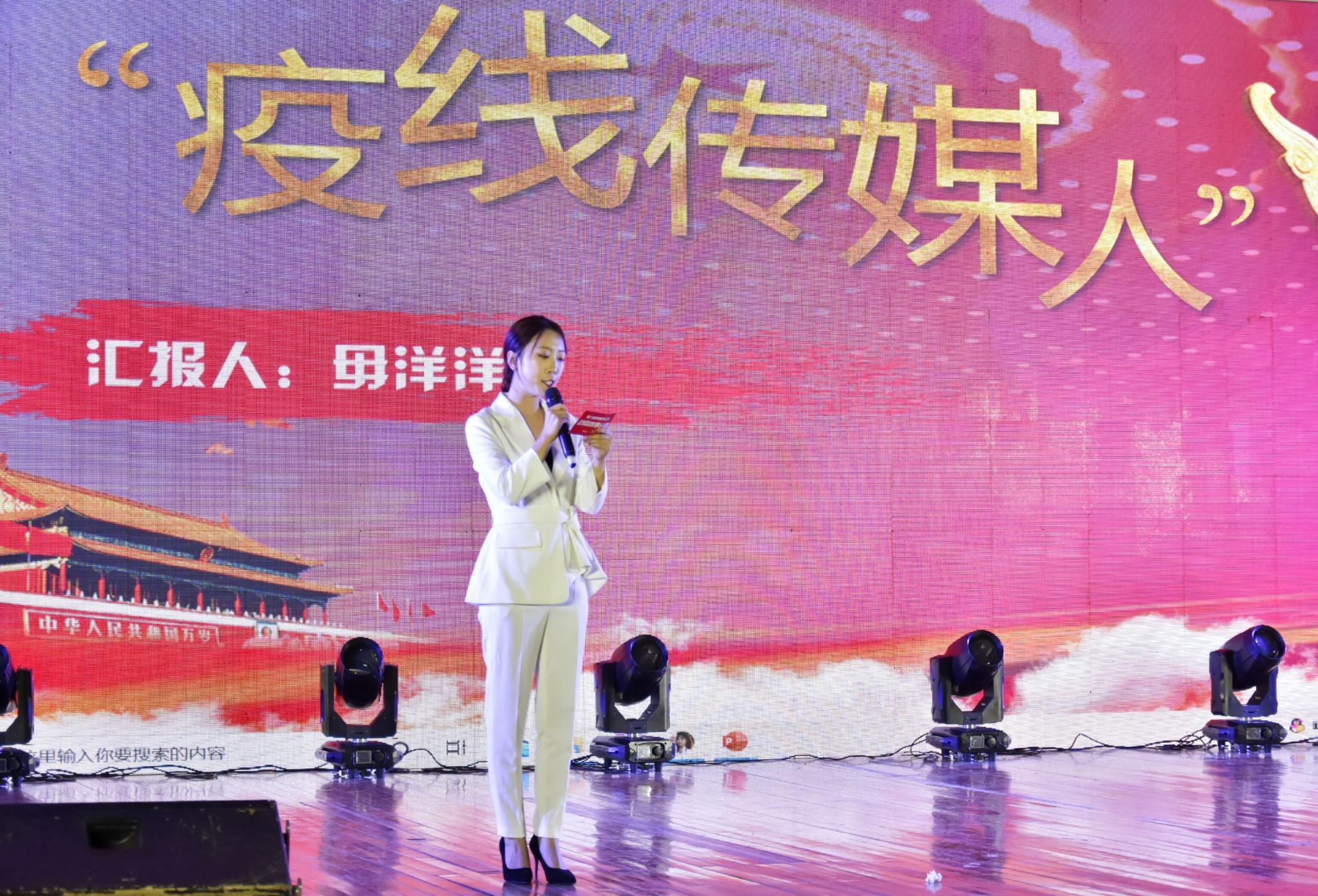 在“疫路传情”篇章,传媒学子朗诵战疫期间史晖作词的《一张无座的车票》表达对钟南山院士的礼赞,小品《乌龙快递》展示了疫情下平凡人物之间的温情,《优秀疫情故事》记录了我们优秀的学长学姐在疫情的奉献,真情实感表达传媒公司对战疫英雄的致敬、对国家的热爱之情。