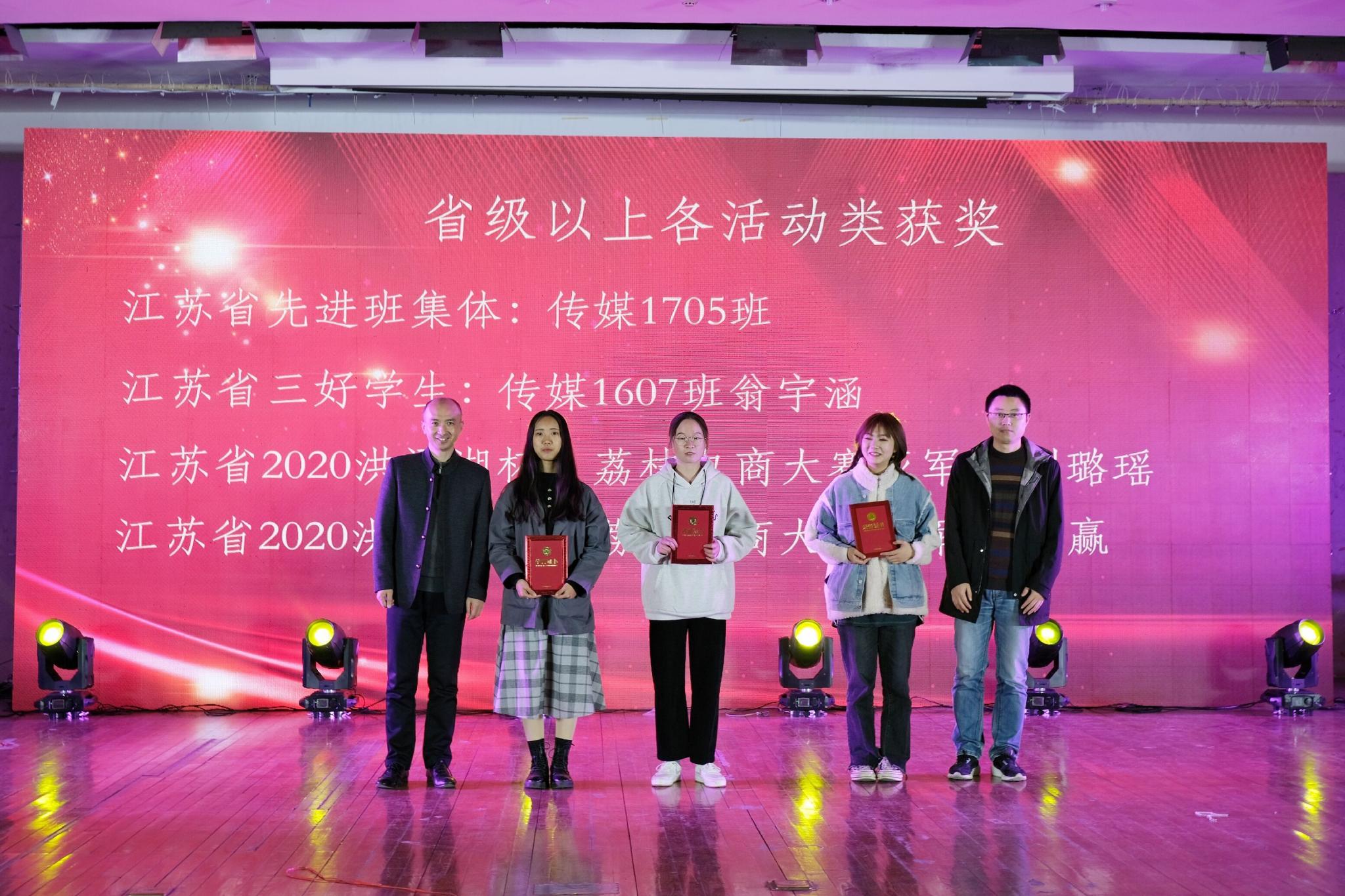 开幕式上,杨亚军等领导为传媒公司2019-2020学年获得国家奖学金、省级以上各类专业竞赛获奖以及省级以上各类活动获奖的同学颁奖。传媒公司经理史晖致开幕词。他希望淮师传媒人要掌握会写、会说、会拍、会剪“四会”技能,同时要有坚定的政治方向、科学的价值取向、准确的专业定向和校准人生航向,传递正能量,传讲好故事,传递好声音,承担起未来传媒时代的使命。传媒公司吉祥物“荣荣”“美美”的发布将现场气氛推向高潮。