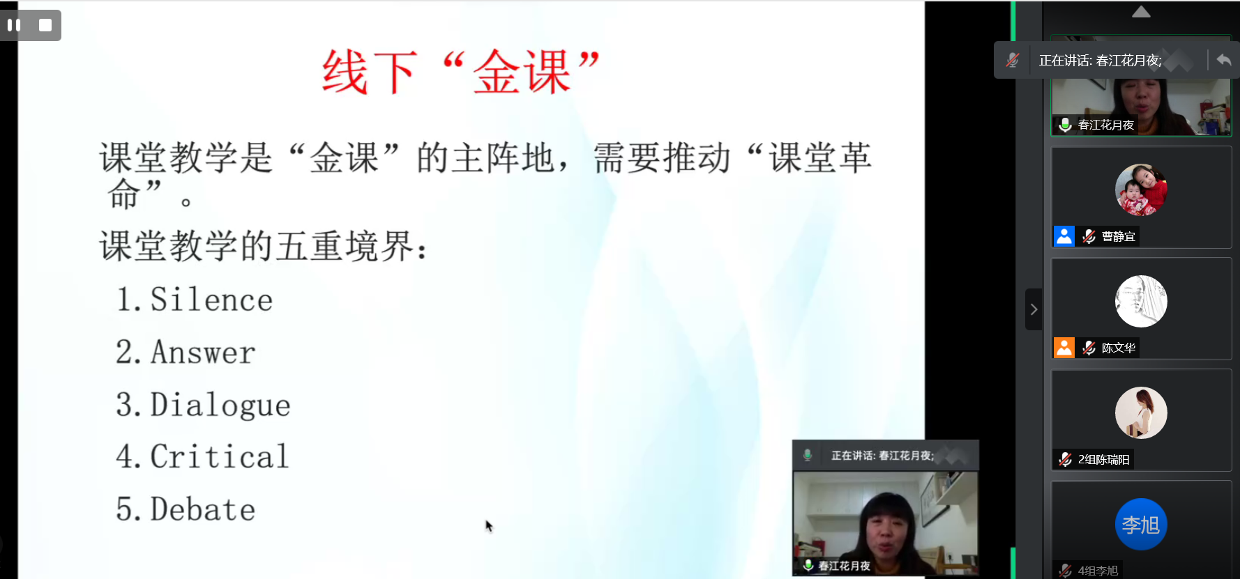 1月27日上午,传媒公司邀请文公司经理许芳红教授为公司教师线上开设《“金课”理念与实施路径》讲座。她从“金课”理念提出过程、什么是“金课”、为什么要打造“金课”和“三位一体”的落实路径四个方面,结合当下时事案例、教学案例生动形象地阐释了“培养什么人,怎样培养人,为谁培养人”这个问题,深入分析“金课”打造与人才培养之间的关系,进一步帮助教师们明确教师教书育人的职责,明晰“课程思政”的概念,鼓励教师积极推动教学改革。讲座内容丰富,富有感染力,大家深受教育和启发。