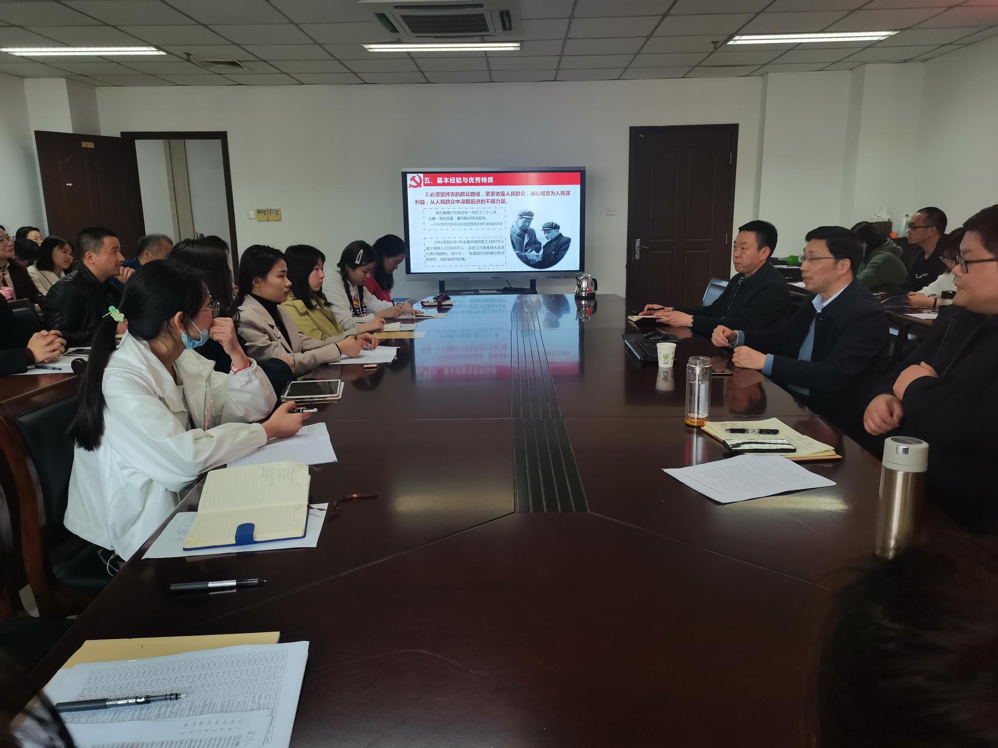 韩同友以《中国共产党百年奋斗历程与基本经验》为题目,围绕深入学习领会习近平总书记关于党的历史的重要论述,从“开天辟地”实现民族独立和人民解放完成救国大业、“改天换地”探索如何建设社会主义实现兴国大业、“翻天覆地”开创中国特色社会主义道路推进富国大业、“经天纬地”中国特色社会主义发展进入新时代推进强国大业四个方面,系统回顾了中国共产党百年奋斗的光辉历程和历史性贡献。报告中,他用四个“基本经验”和六个“优秀特质”详细阐述了中国共产党为什么“能”、马克思主义为什么“行”、中国特色社会主义为什么“好”。他表示,党史学习是每一位党员干部的终身必修课。要深刻领会,从党史学习教育中坚定信仰信念,汲取前进力量。