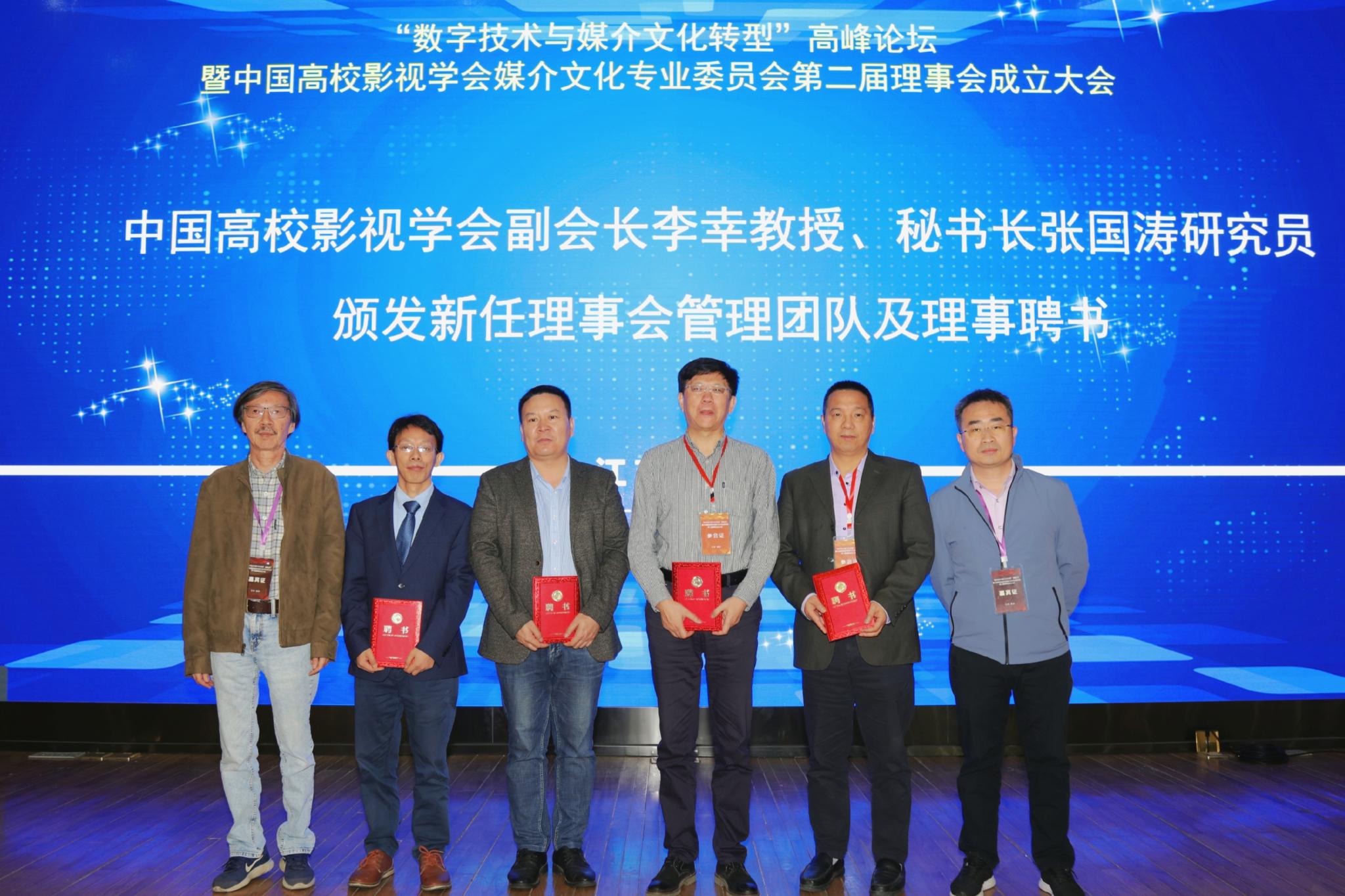 中国高校影视学会秘书长张国涛研究员宣读了媒介文化专业委员会第二届理事会成立批复文件。李幸、张国涛为新任理事会管理团队及理事颁发聘书。