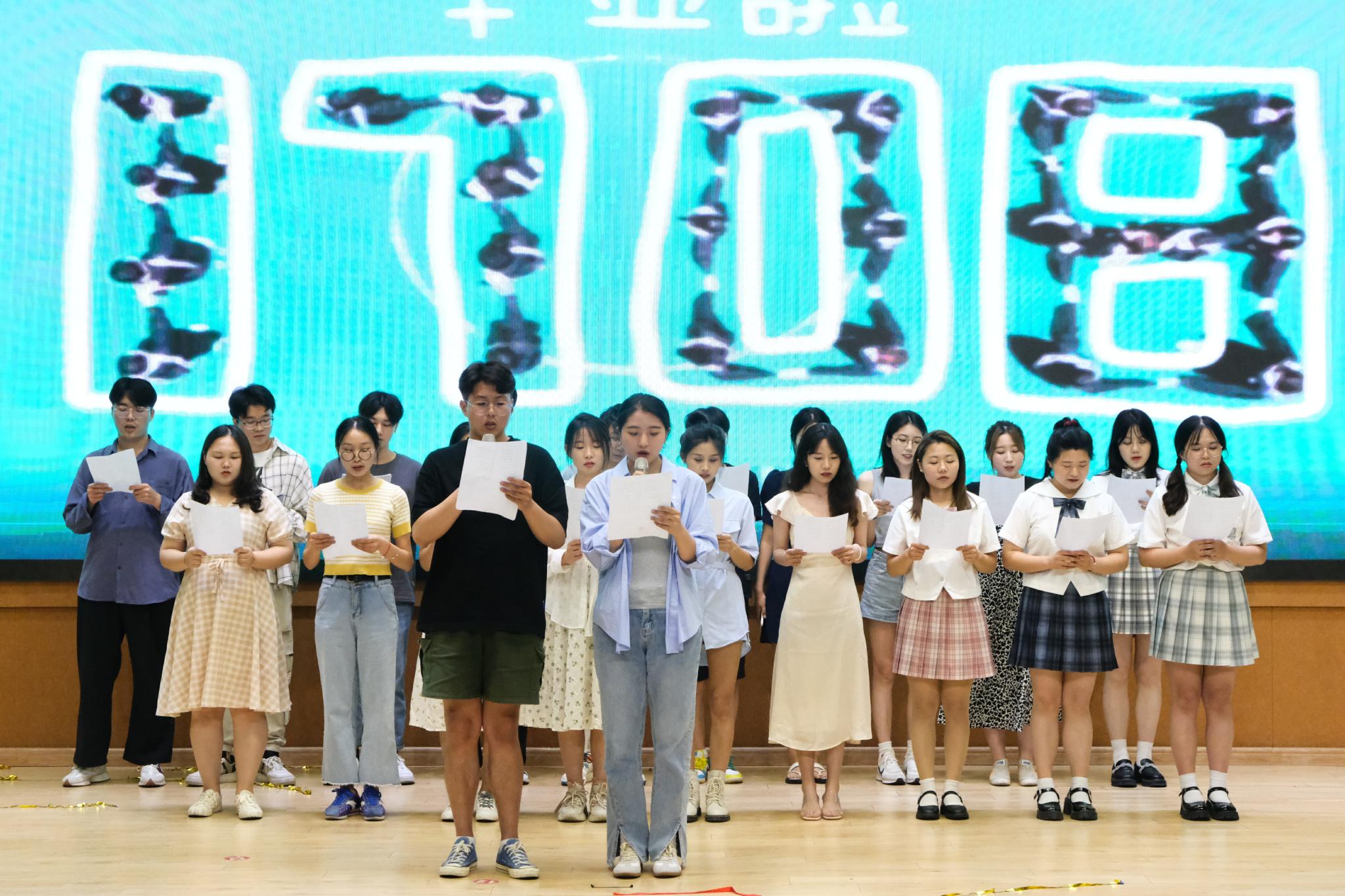 聚是一团火,散是满天星。每个毕业班都精心准备了节目。1701班合唱《那些花儿》,唱出了四年青春生如夏花的绚烂;1702班一首《再见》,将过往灿烂的美好重现,再见,军训挥洒汗水的你,再见,饭后操场漫步的你,再见,课件笑声爽朗的你……;1703班的《你曾是少年》,让人想起年少时的光芒与期待,一首rap独唱,唱出独特的人生态度;1704班全体同学合唱的《倔强》,唱出了四年滚烫的青春中最沸腾的一刻仲夏;1705班用《奇迹再现》奔向未来,奔向远方,浇筑梦想奇迹,1706班与1707班共同带来的《北京东路的日子》散发着苏打气泡水味,定格着彼此灿烂的笑容,使的这个夏季的晴天注定不凡;1708班的《不说再见》有如山间云岚,无心出岫,已然美好。
