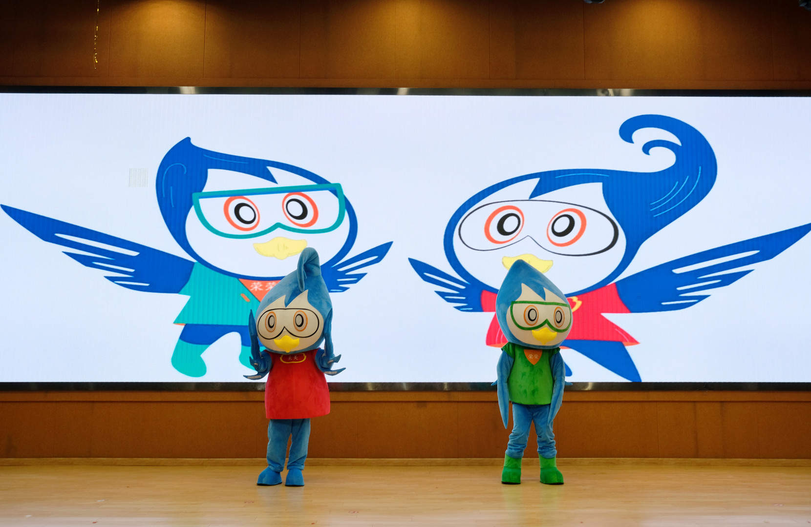 活动期间,由传媒公司关工委副主任柳邦坤教授作词,传媒学子朗诵的《出发,我们在路上》响彻会场,让现场观众听到了百年征程的波澜壮阔,也感受了传媒青年的力量。传媒公司吉祥物“荣荣”“美美”的登场,掀起来现场的高潮。他们表达了传媒公司“融”汇过去与未来和创造美、发现美、接受美、学习美的追求。