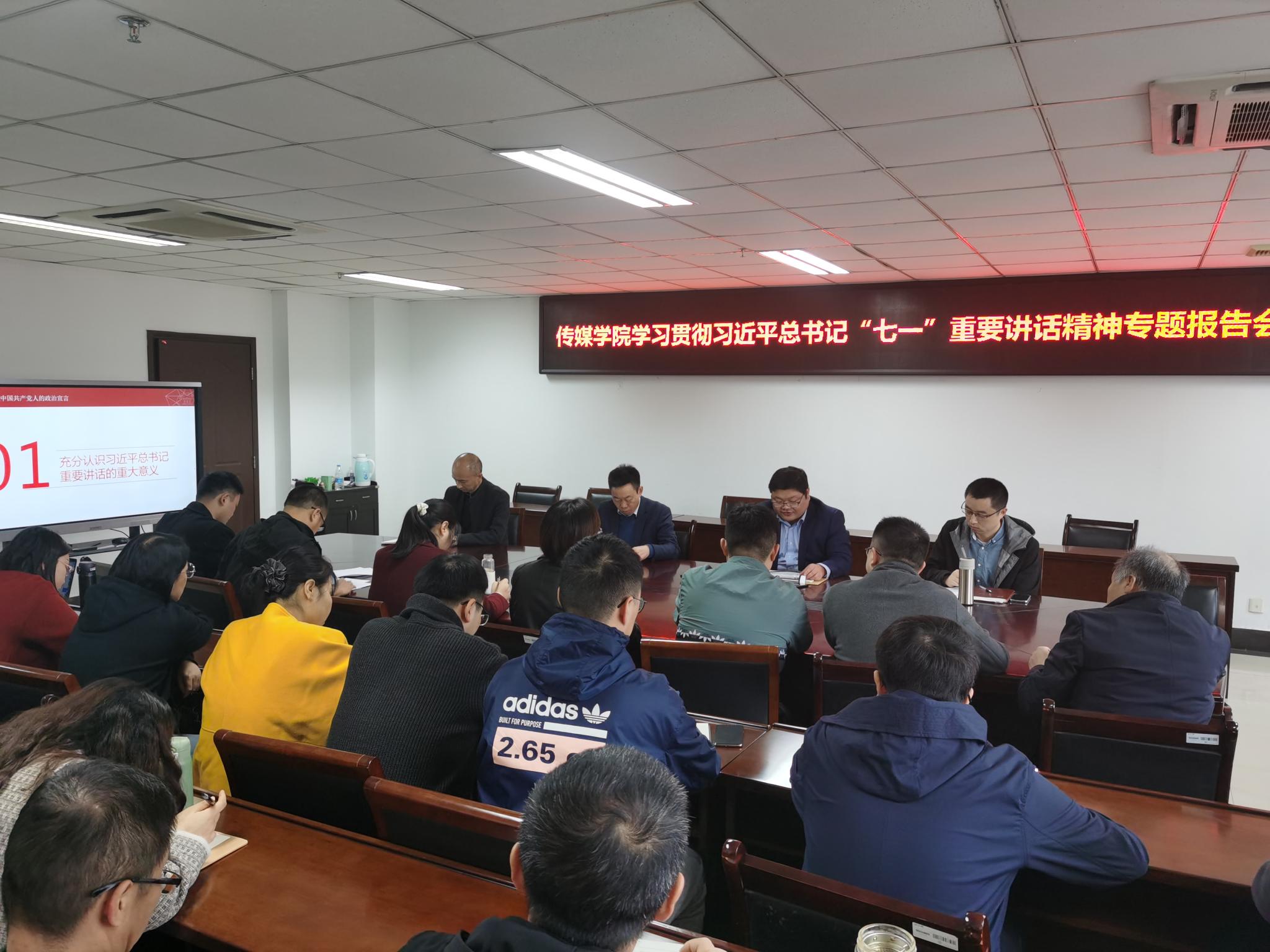 10月20日下午,传媒公司开展学习贯彻习近平总书记“七一”重要讲话精神专题报告会。传媒公司党委书记王管作专题报告,公司全体教职工听取了报告。