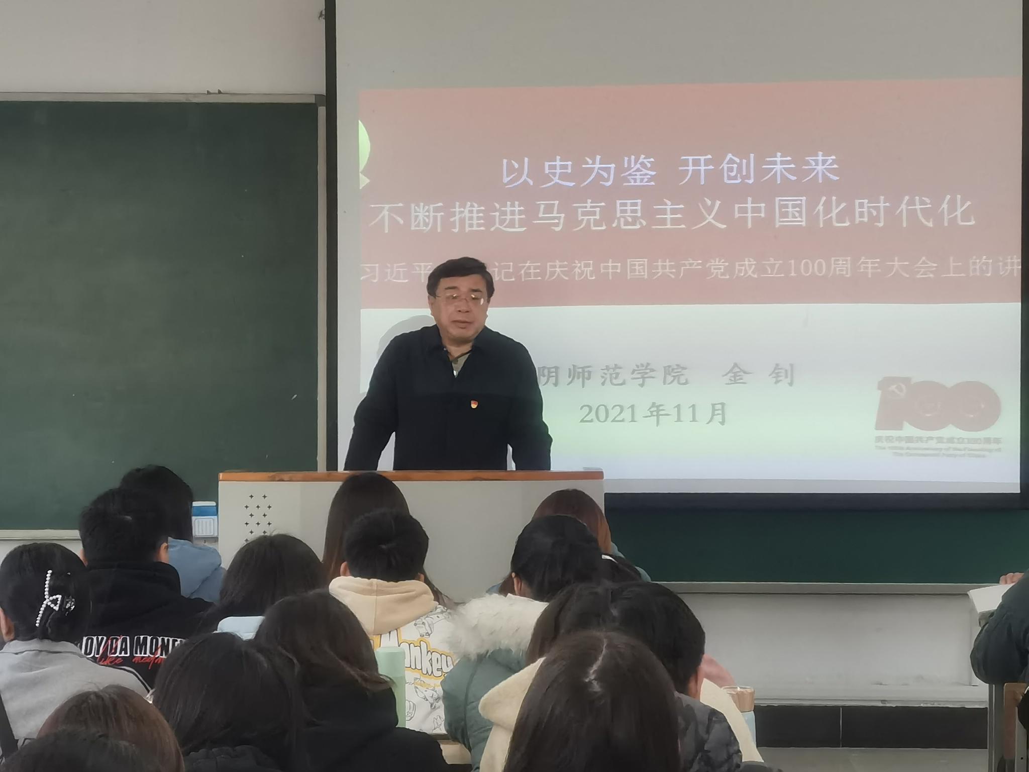 首先,金钊以《以史为鉴 开创未来 不断推进马克思主义中国化时代化》为题,从习近平总书记“七·一”重要讲话的内容出发,围绕“马克思主义犹如一轮壮丽的日出”“马克思主义中国化的光辉历程”“当代中国和21世纪的马克思主义”“续写马克思主义中国化时代化的新篇章”四个方面,详细深入地研讨了马克思主义的伟大发展历程,同时由浅入深地对习近平总书记“七·一”重要讲话精神进行了解读。他说,无论未来你在祖国的哪个角落、从事什么样的工作,都要牢记党员身份,勇担使命、砥砺前行,用青春和汗水创造出让人刮目相看的新业绩。