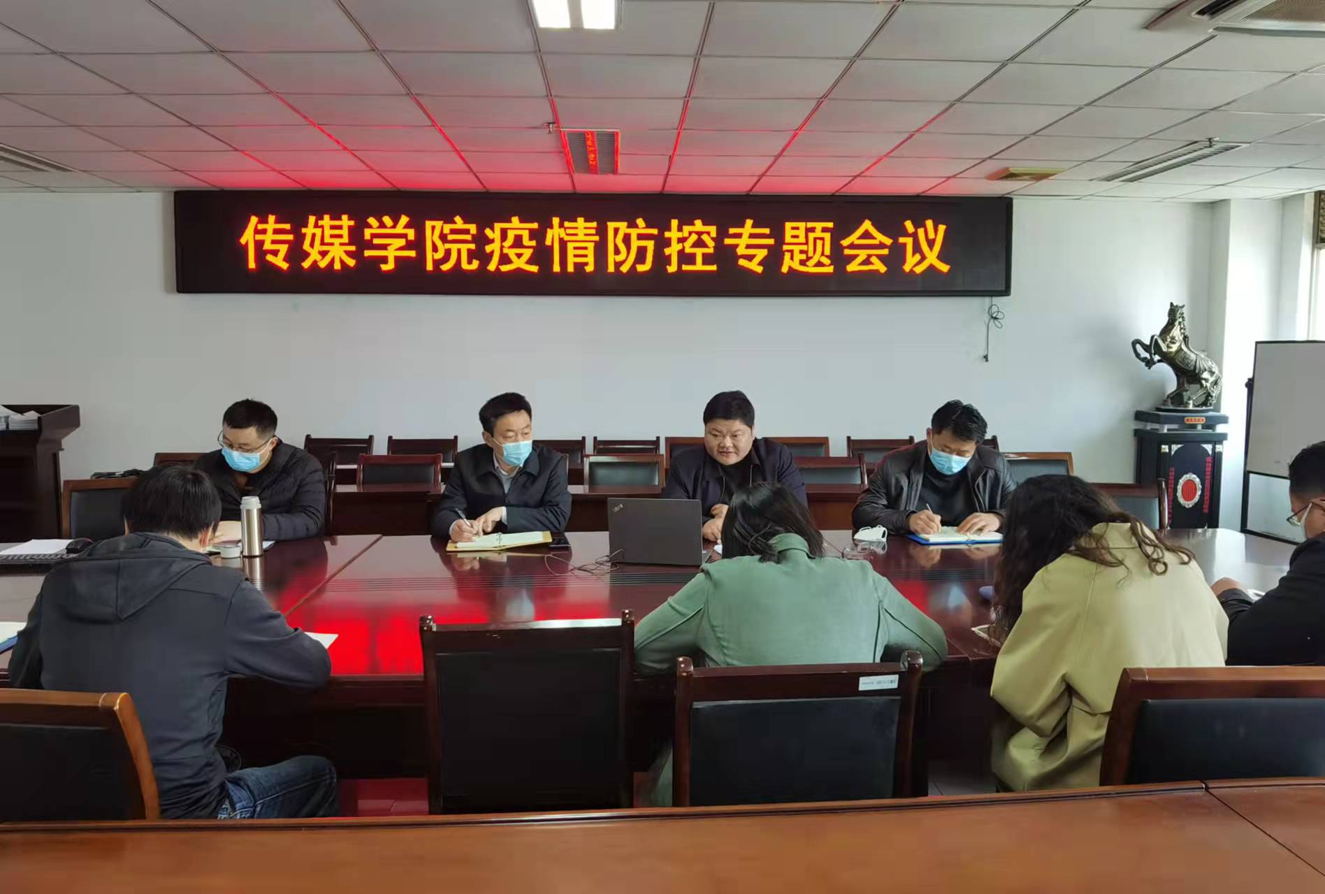 4月3日上午,传媒公司召开疫情防控专题会议,传达全省疫情防控调度专题会议精神和公司《关于进一步做好疫情防控工作的通知》。公司党政班子全体成员、全体辅导员、班主任线上线下参加会议。