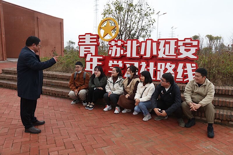 在涟水县成集镇,教工党员走进涟水军旅小镇红色基地纪念园区、纪念馆开展实境课堂教学,大家驻足观看馆内红色文献资料、文物资料,认真聆听革命先烈的感人事迹,了解苏北抗日根据地的开辟历程。一件件珍贵的实物带领大家重温了那段战火纷飞的峥嵘岁月,深刻感受“坚定信念,勇于奉献,敢于斗争,不怕牺牲”的革命精神。党委书记王管在青年学习社教育基地开设党的二十大精神专题微党课。