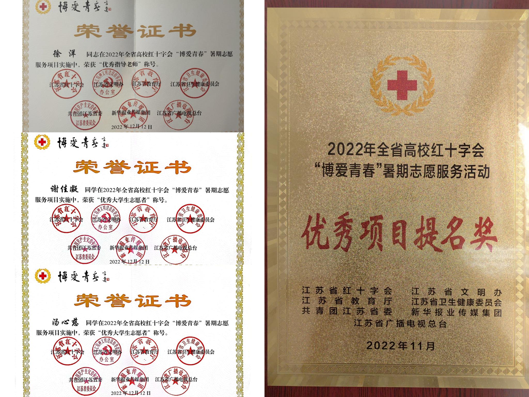 在2022年江苏省高校红十字会“博爱青春”暑期志愿服务项目展示总结活动中,传媒公司“牵手‘橙色卫士’让城市更加温暖”项目从60个项目中脱颖而出,获优秀项目提名奖。本次活动由省红十字会、省文明办、省教育厅、省卫生健康委、团省委、新华报业传媒集团、省广播电视总台等部门联合开展。团队负责人汤心慈、成员谢佳凝分别获评省高校红十字会“博爱青春”暑期志愿服务项目“优秀老员工志愿者”,团队指导老师徐洋获评省高校红十字会“博爱青春”暑期志愿服务项目“优秀指导老师”。
