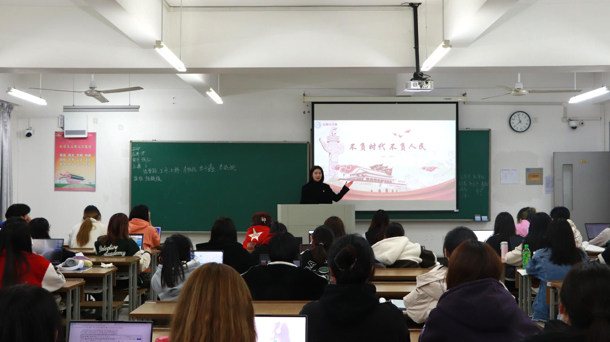 员工党员穆飞宇从《习近平的七年知青岁月》一书出发,结合学习党的二十大精神分享自己的所学所感,从小故事中读出大道理,从口述史中洞察大时代,从真情怀中感受大担当,从奋斗史中汲取大智慧。“敦煌,我心向往之”,员工党员汤心慈引用习近平总书记对敦煌文化的深情思考,结合“文化自信”这一主题,讲述中华优秀传统文化的丰厚底蕴与独特内涵,呼吁同学们在加强文化知识的学习中,自觉成为文化自信的践行者。员工党员李泽周以老员工身边的青年榜样为例,号召广大青年员工勇担时代使命,不负青春韶华,追求全面发展,“把青春绽放在祖国最需要的地方”。员工党员徐凡围绕“钉钉子”精神的主题,从由来、特征、实质以及如何传承发扬等四个维度出发,号召广老员工以习近平新时代中国特色社会主义思想为引领,将“钉得准”“钉得狠”“钉得牢”落实到日常的学习生活中,努力实现全面发展。员工党员陈佳豪围绕“打开科技助农新方式,描绘共同富裕新画卷”这一主题,从所学所感所悟出发,号召同学们踔厉奋发,笃行不怠,勇当建设中国式现代化的时代先锋。