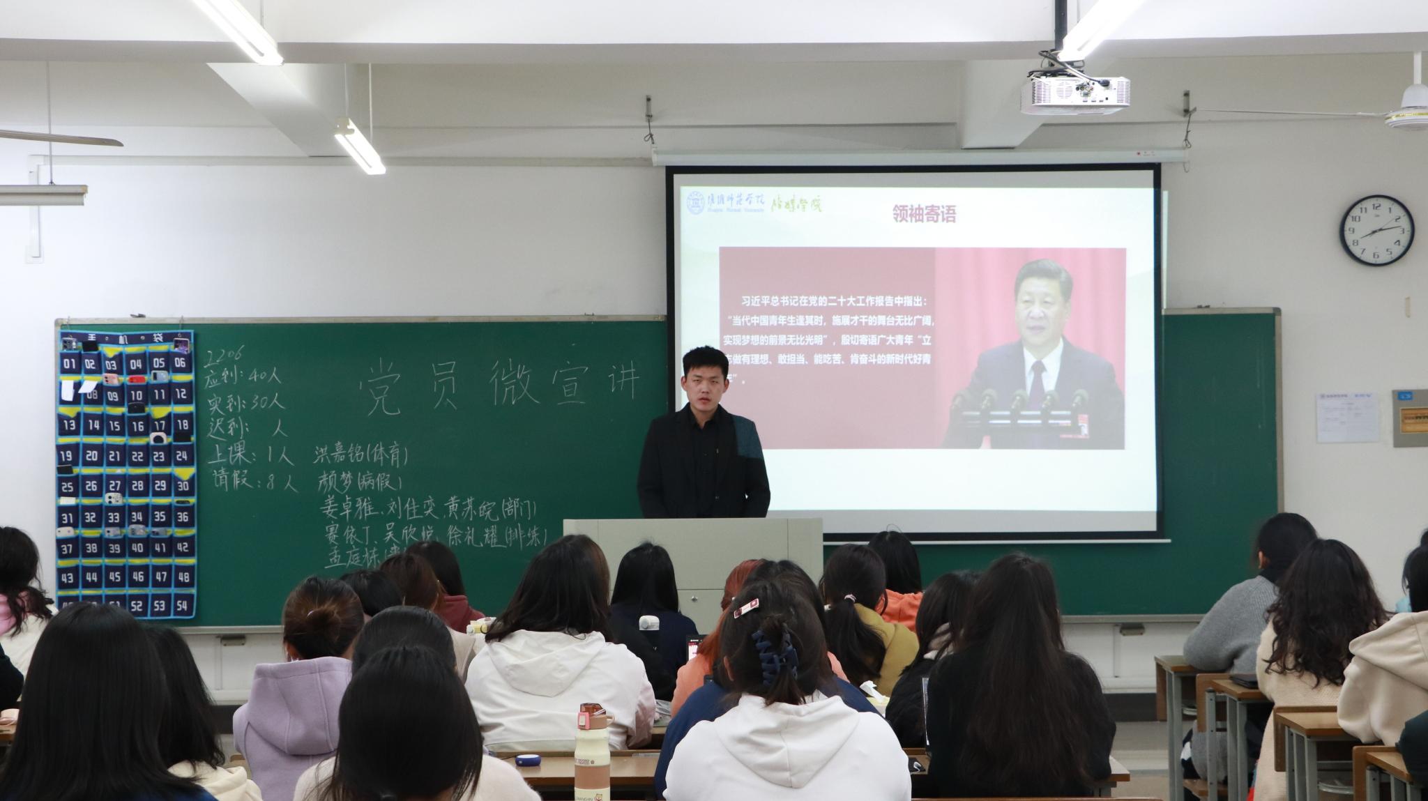 为扎实推进“德才兼备 全面发展”主题教育月活动开展,积极营造“学习二十大 永远跟党走 奋进新征程”的氛围,近日,传媒公司组织“传习”宣讲团走进公司2021级、2022级各个班级、团支部开展系列微宣讲活动。2020级10余名员工党员担任主讲。
