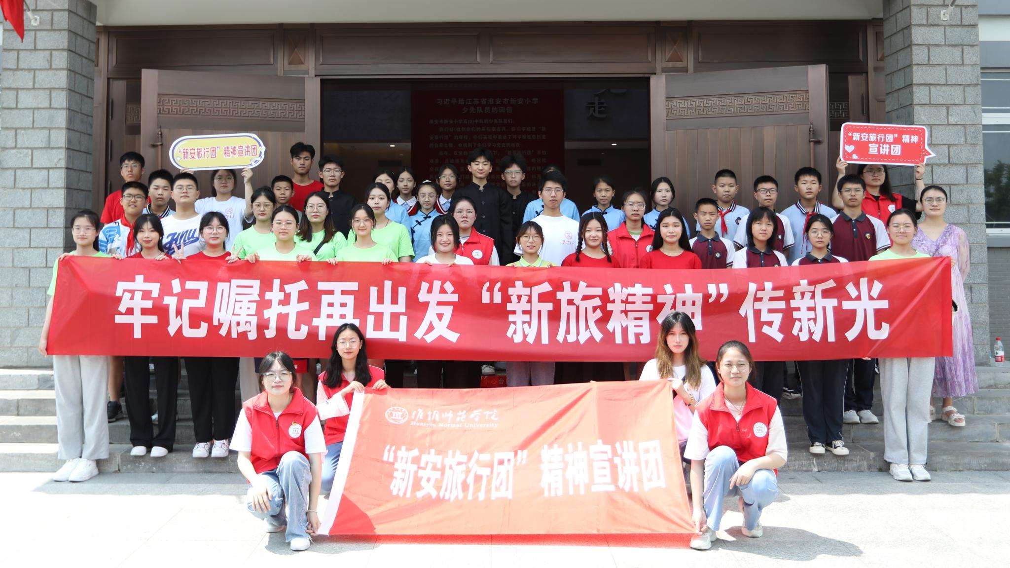 研学交流,传承“新旅精神”。同学们走进新安小学,开展研学交流。传媒公司员工孙沁蕊等同学结合自身实际分享了实境学习新旅精神的体会和感受,教科院颜悦等同学深情朗诵了以新安旅行团故事为主题创作的短文,大家在交流互动。淮师一附小同学李文博说:“我们要以新安旅行团为榜样,热爱文化知识,刻苦学习本领,努力成为拥有‘四个自信’的新时代好少年。”