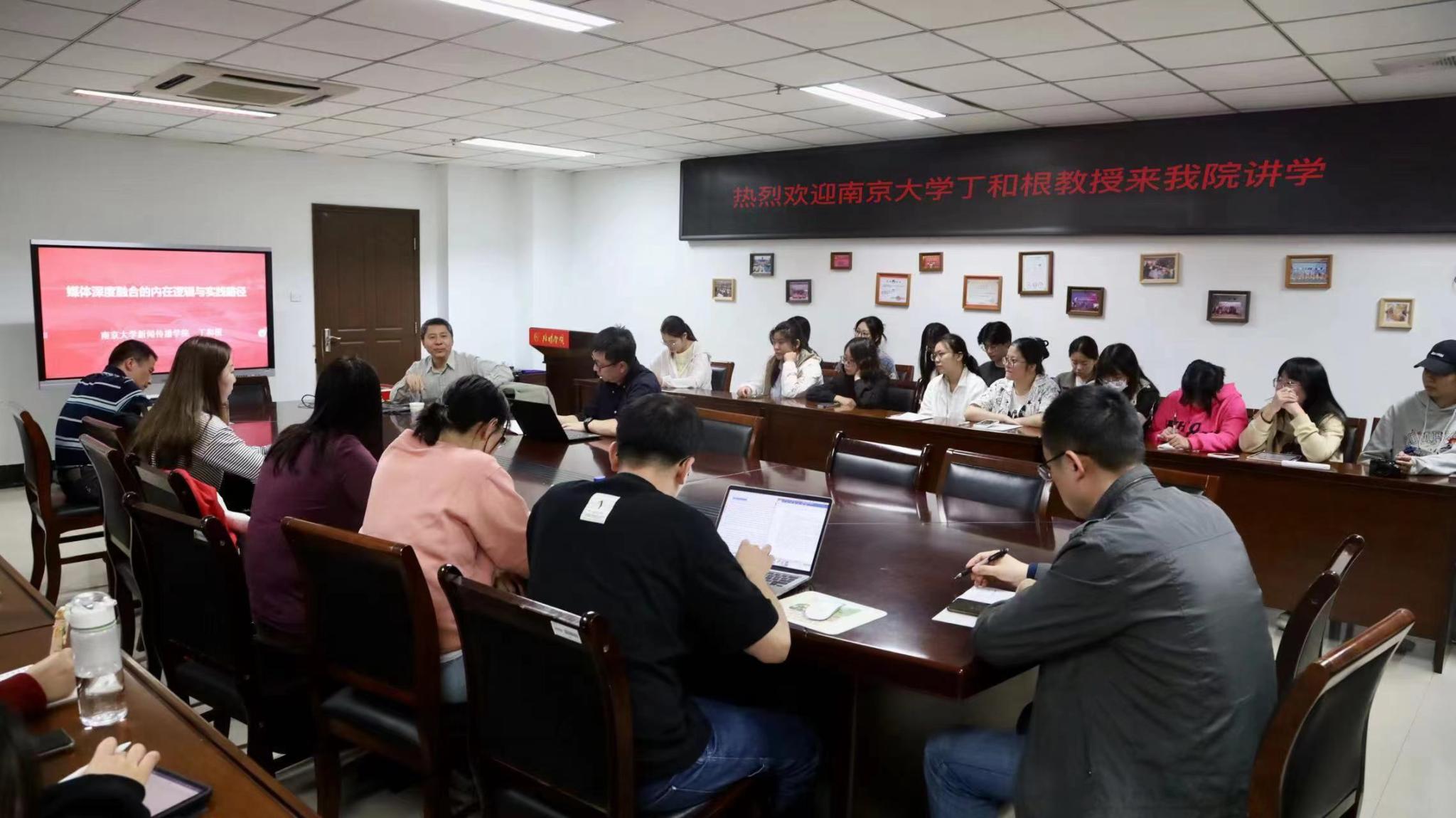 10月13日,XCsports邀请南京大学新闻传播公司丁和根教授作题为“媒体深度融合的内在逻辑与实践路径”的讲座,讲座由经理助理周浒主持,XCsports部分师生代表参加讲座。