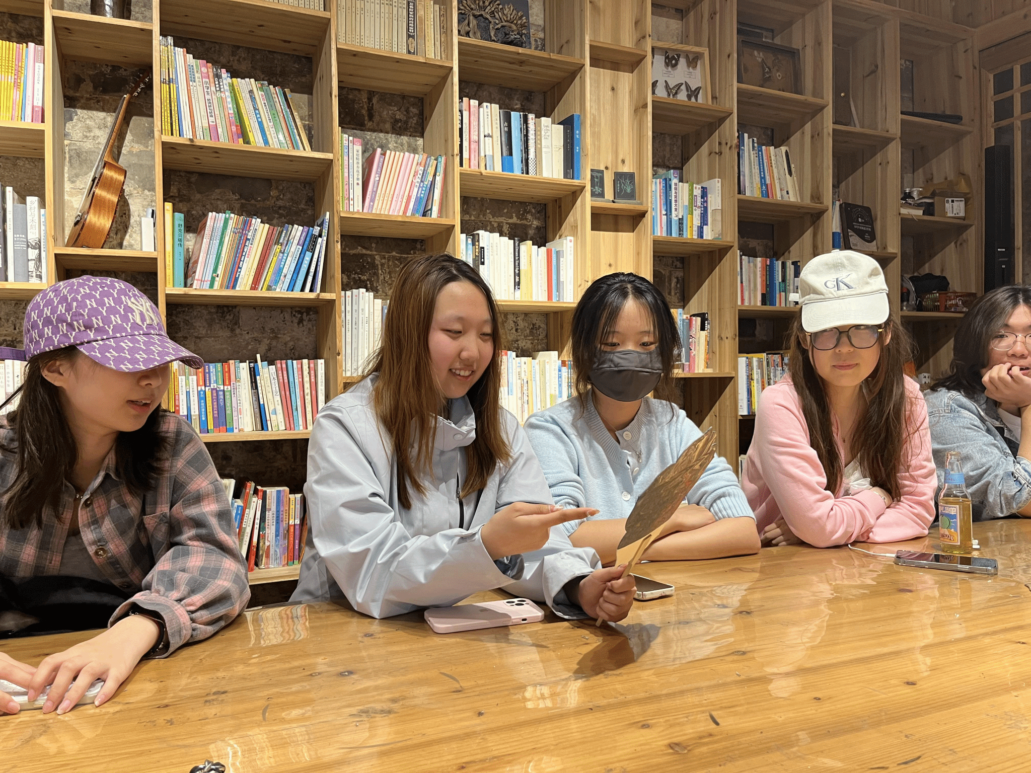 随后,受到当地村民的邀约,同学们动手实践了手工非遗漆扇的制作。对漆扇颇有兴趣的信息委员周雯茜同学为大家讲述了这项非遗文化的历史,同学们个个听得聚精会神,纷纷赞叹起我国非遗文绚丽化多彩。