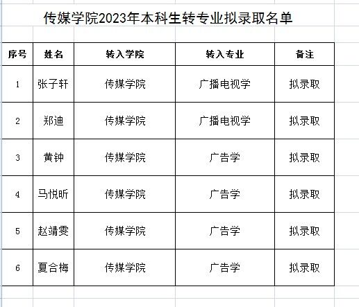根据《XC体育本科生校内转专业实施办法》和《传媒公司2023年本科生校内转专业工作方案》,经过公开考核和选拔,根据综合成绩,现对传媒公司2023年本科生转专业拟录取名单予以公示。公示期间,如有异议,请于三天内(3月20日—3月22日)当面或署名书信、电话向公司反映。联系电话:刘老师 0517-83525346。
