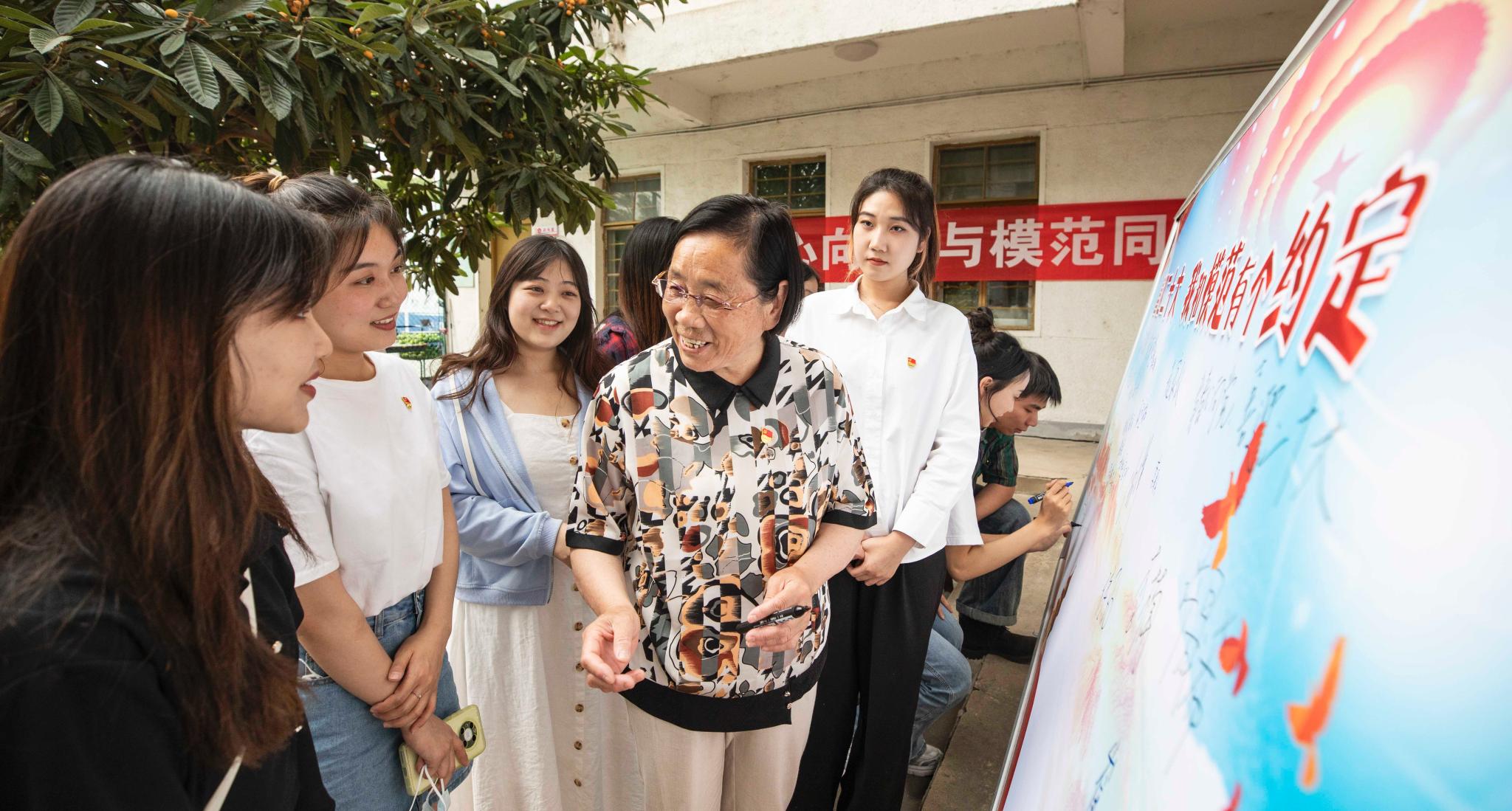 2006班团支书徐凡、2106班团支书许晟希分别汇报了 “周恩来班”创建情况,李爱云欣然题写寄语“青年老员工要爱党、爱国、爱军、爱民”。